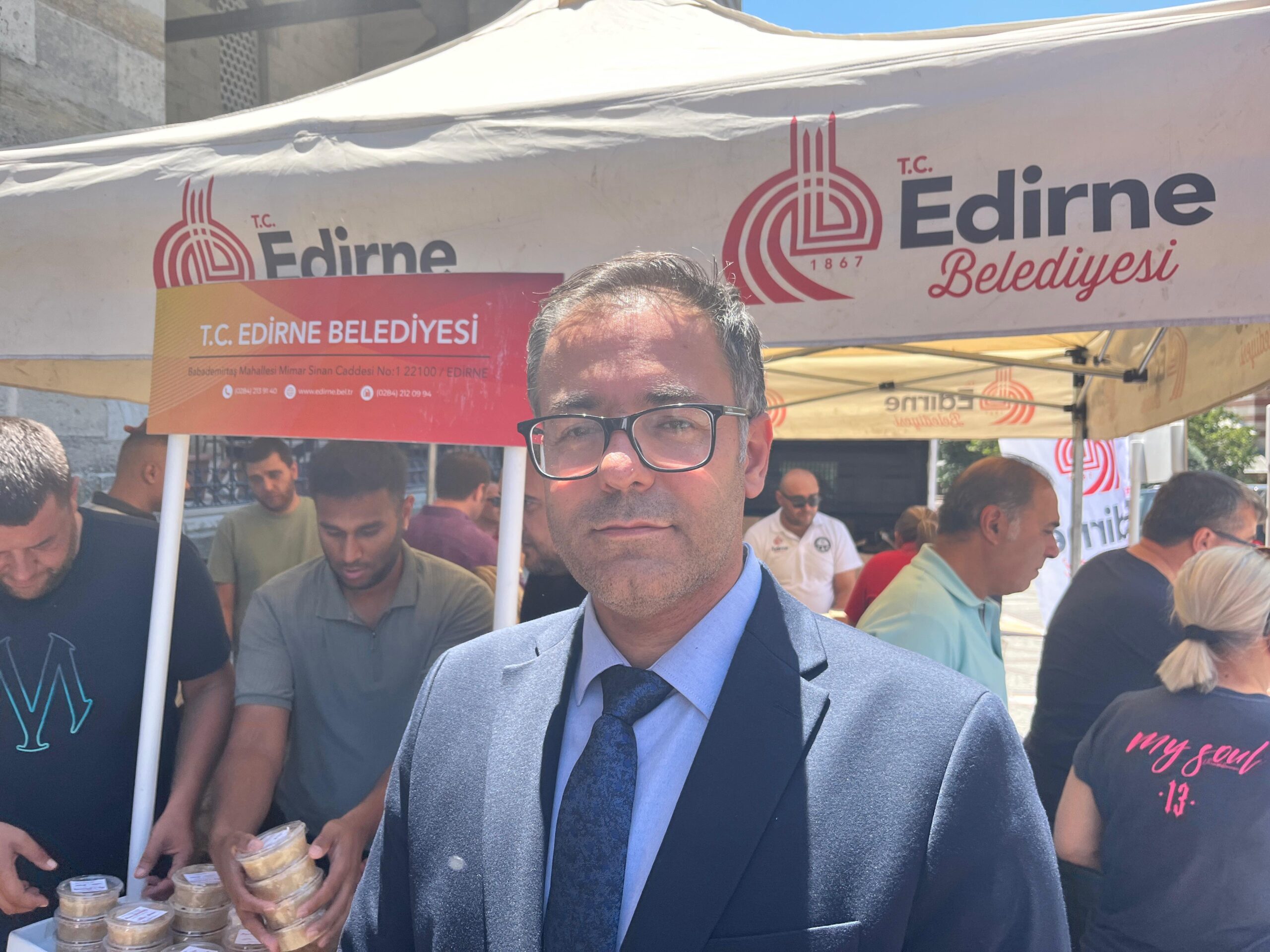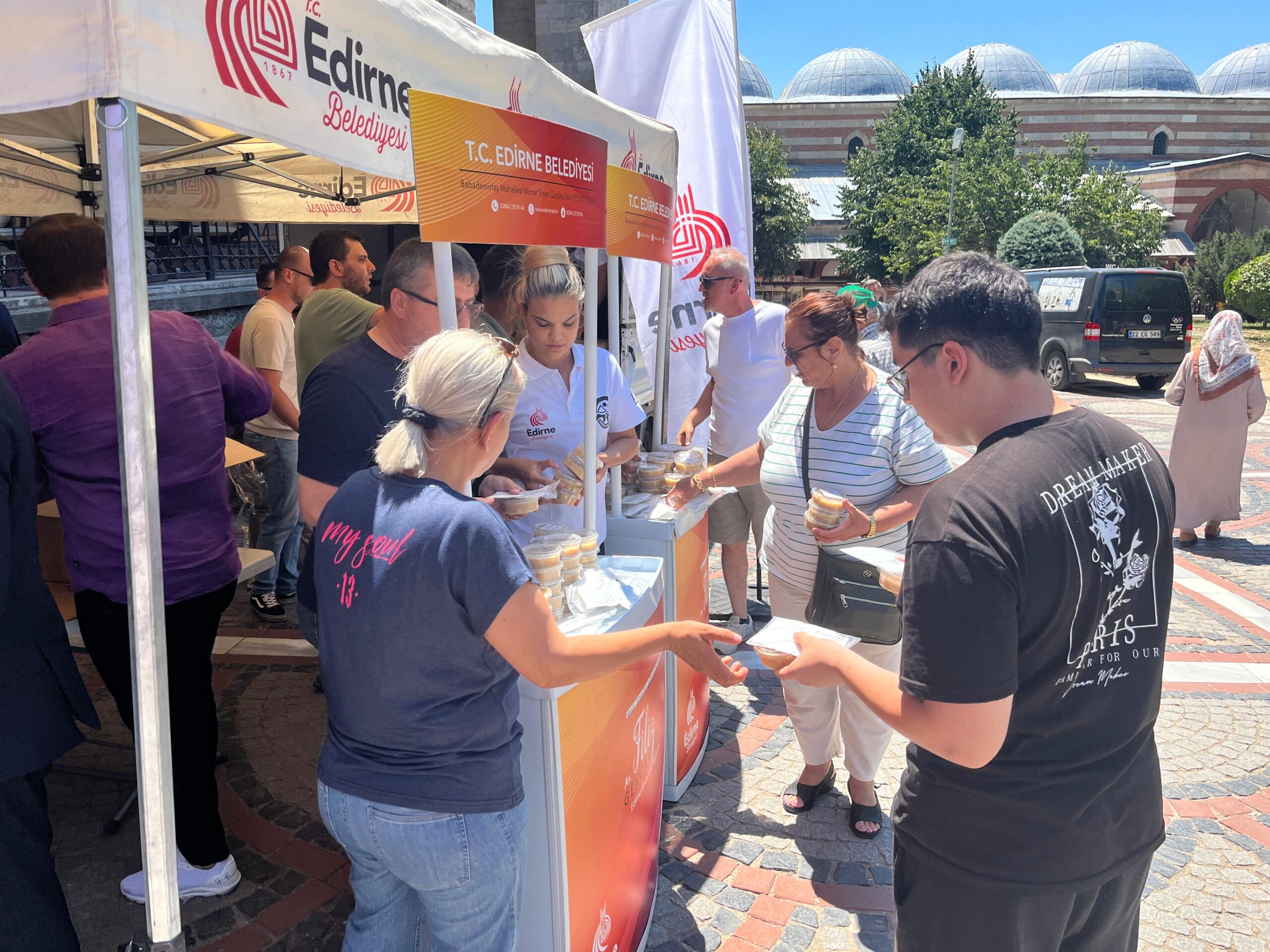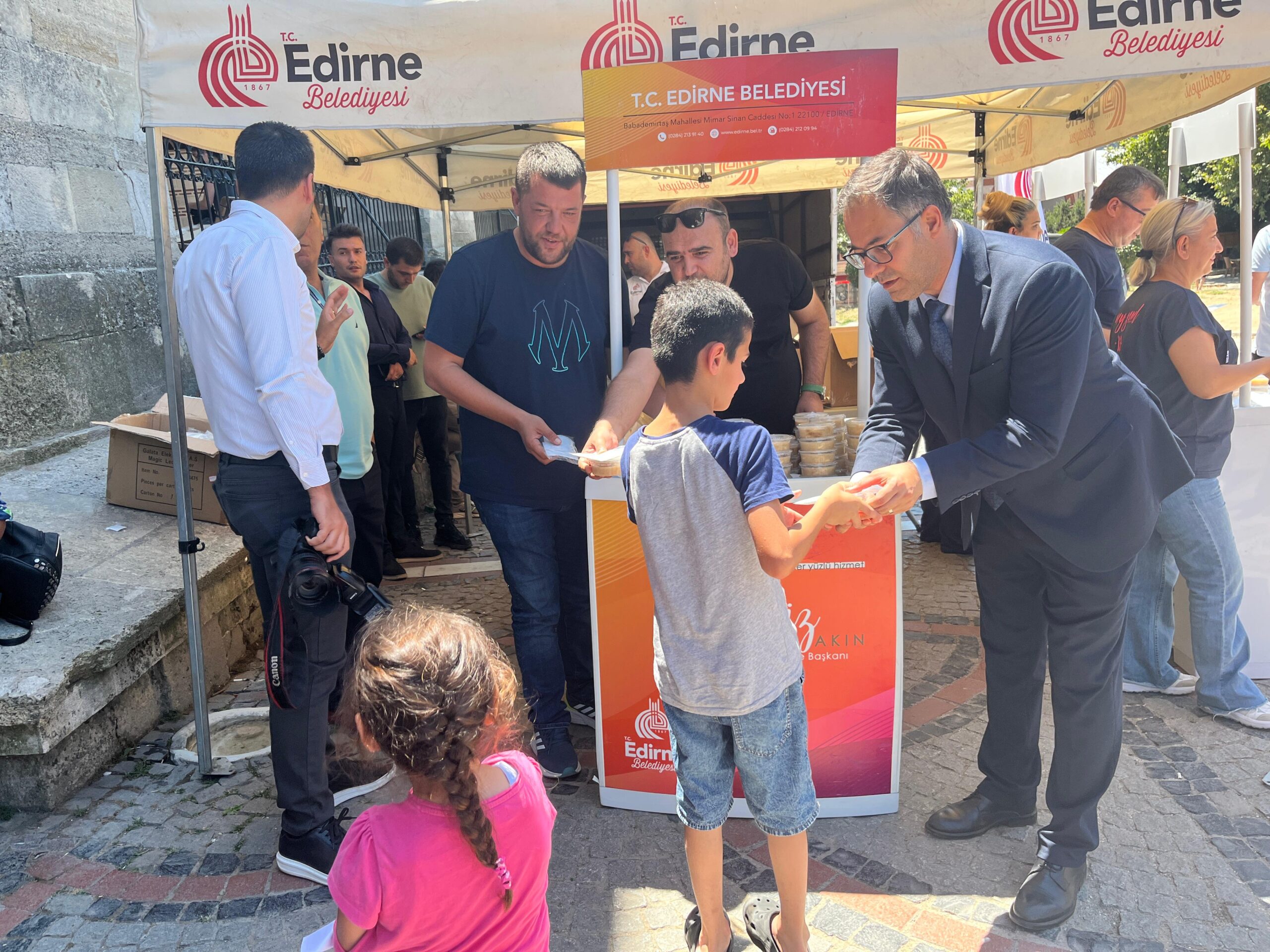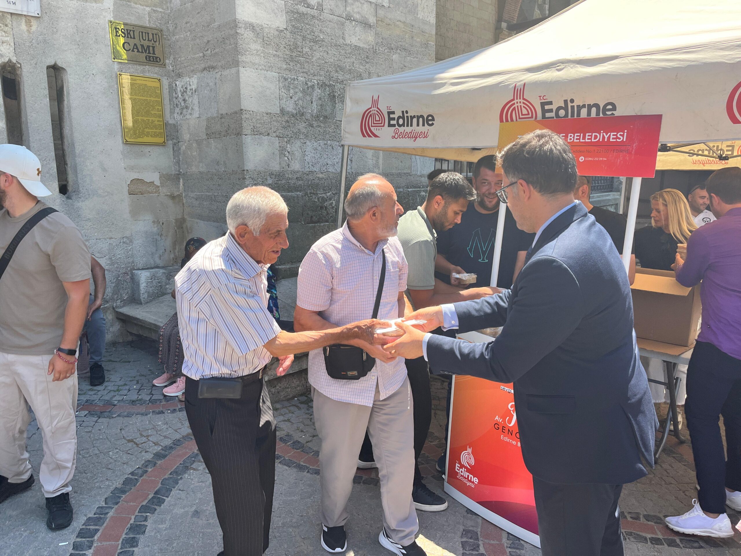 Edirne Belediyesi tarafından, kentin farklı noktalarında Muharrem ayı dolayısıyla aşure dağıtımı yapıldı. Eski Cami önünde gerçekleştirilen aşure dağıtımına Edirne Belediye Başkan Yardımcısı Cenk Ergüden de katıldı. Ergüden, öğle namazından çıkan vatandaşlara aşure ikram etti.