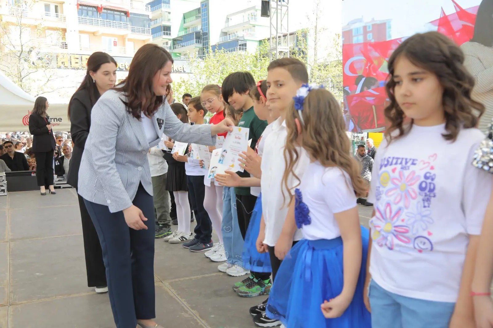 Biz bu etkinliklerle çocuklarımızla birlikteyiz; bayramımızı çocuklarımız ve hemşehrilerimizle beraber kutluyoruz. Çünkü az önce de ifade ettiğim gibi, çocuklarımızın geleceği için çalışmaya, mücadele etmeye ve umutlu olmaya kararlılıkla devam edeceğiz.