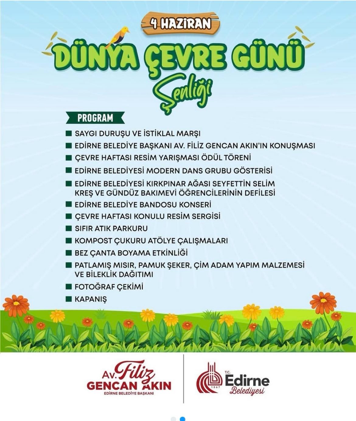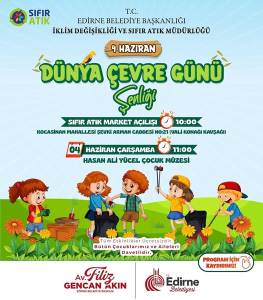Çevrenin korunmasının sadece bugünün değil, yarının da sorumluluğu olduğunu vurgulayan Edirne Belediye Başkanı Av. Filiz Gencan Akın, “İklim krizi ve çevresel sorunlar, artık hayatımızın her alanını etkiliyor. Bu nedenle sadece bireysel değil, kurumsal olarak da sorumluluk almak zorundayız. Sıfır Atık Marketimiz de bu anlayışın somut bir yansımasıdır. Vatandaşlarımız artık atıklarını çöpe atmak yerine bir değere dönüştürebilecek, hem çevreye katkı sunacak hem de ihtiyaç duydukları ürünlere ulaşabilecek. Bu market sadece bir alışveriş noktası değil; sürdürülebilir yaşam kültürünün kentimizde kökleşmesini sağlayacak bir farkındalık alanıdır. Özellikle çocuklarımızın bu sürece dahil olması, geleceğimiz adına umut verici. Çünkü çevre bilinci, küçük yaşta kazanıldığında kalıcı olur. Bu nedenle tüm çocuklarımızı ve ailelerimizi bu özel günün bir parçası olmaya, birlikte daha temiz, daha yeşil bir Edirne’yi inşa etmeye davet ediyorum” dedi.