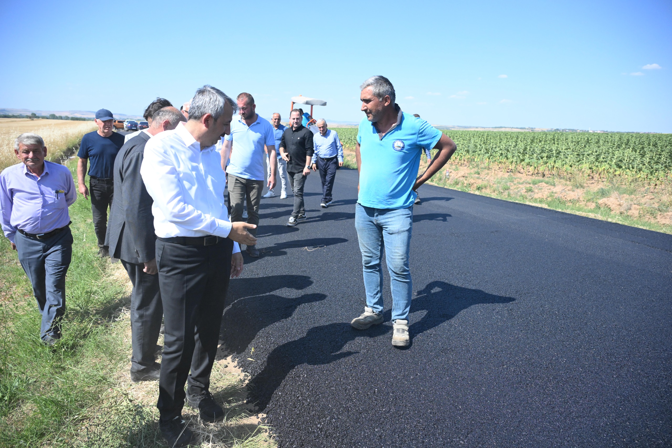 Yolun, Hamzabeyli Gümrük Kapısı’nı kullananlar için de alternatif olabileceğine dikkat çeken Sezer, “İkincisi de yine Hamzabeyli gümrük kapımıza da bir belki sıkışık durumlarda alternatif olacak, kullanılacak bir çıkış yolu olarak da burayı değerlendirme imkanımız olacak. Burası az önce söylediğim gibi borsadan başlayıp, Hamzabey’deki gümrük otobanına bağlanana kadar 12 köyün direkt olarak kullandığı, dolaylı olarak da birçok köyün ve birçok vatandaşımızın sıklıkla kullandıkları bir yol. Köylerimizde sadece sıcak asfalt yapmayacağız. Yine köylerimizde kilit parkelerini yapıp, içme suları, bizim küçük sulama göletleri, sulama sistemleriyle beraber, güneş enerji sistemleriyle beraber köylerimizi bizim bu üretimi destekleyecek ve köy nüfusumuzun köyde üretim yapmasını sağlayacak asgari konforu da köylülerimize vermek istiyoruz. Bu konuda da çok hep beraber önemli çalışmalar yaptığımızı da belirtmek isterim” diye konuştu.