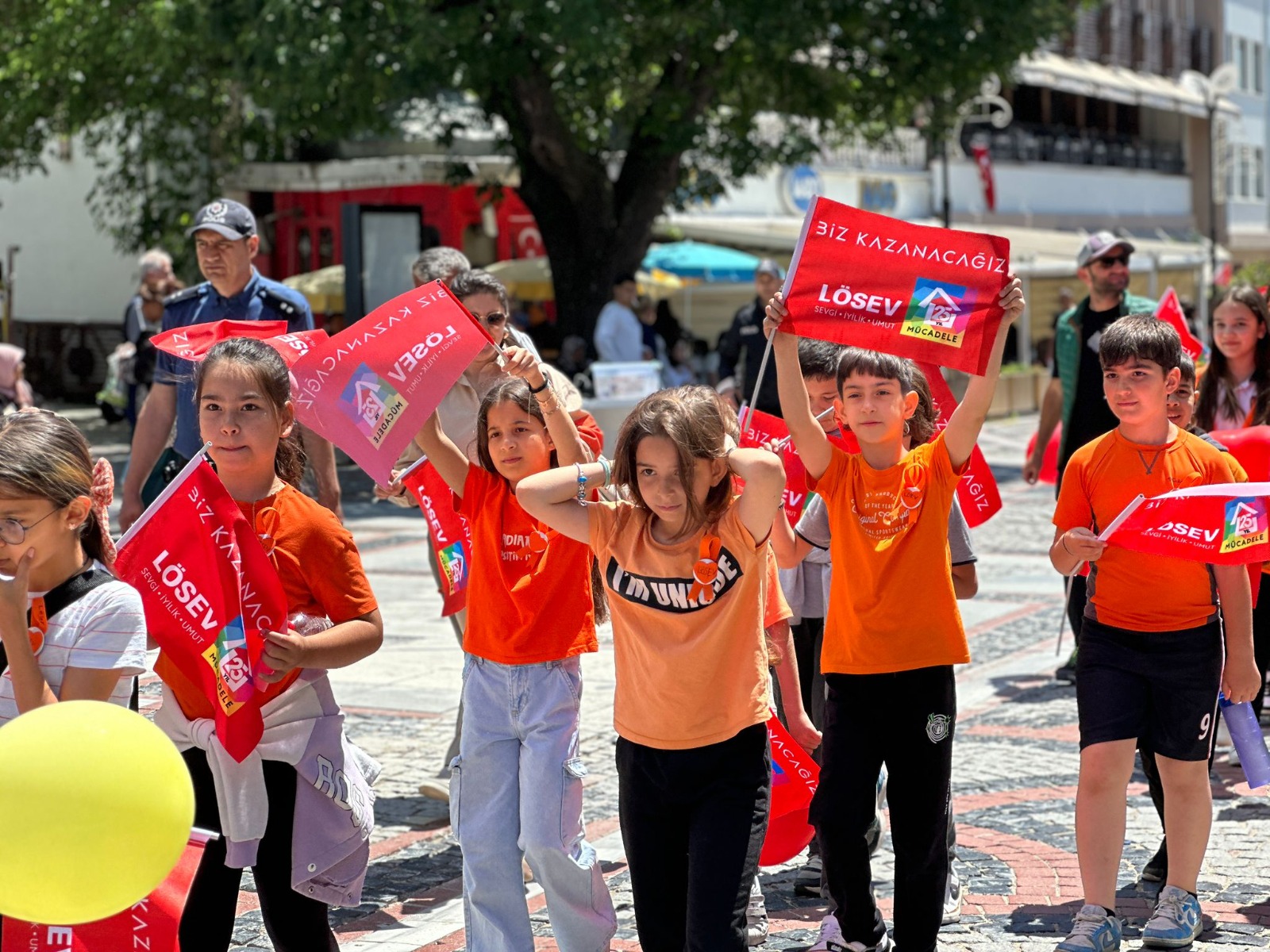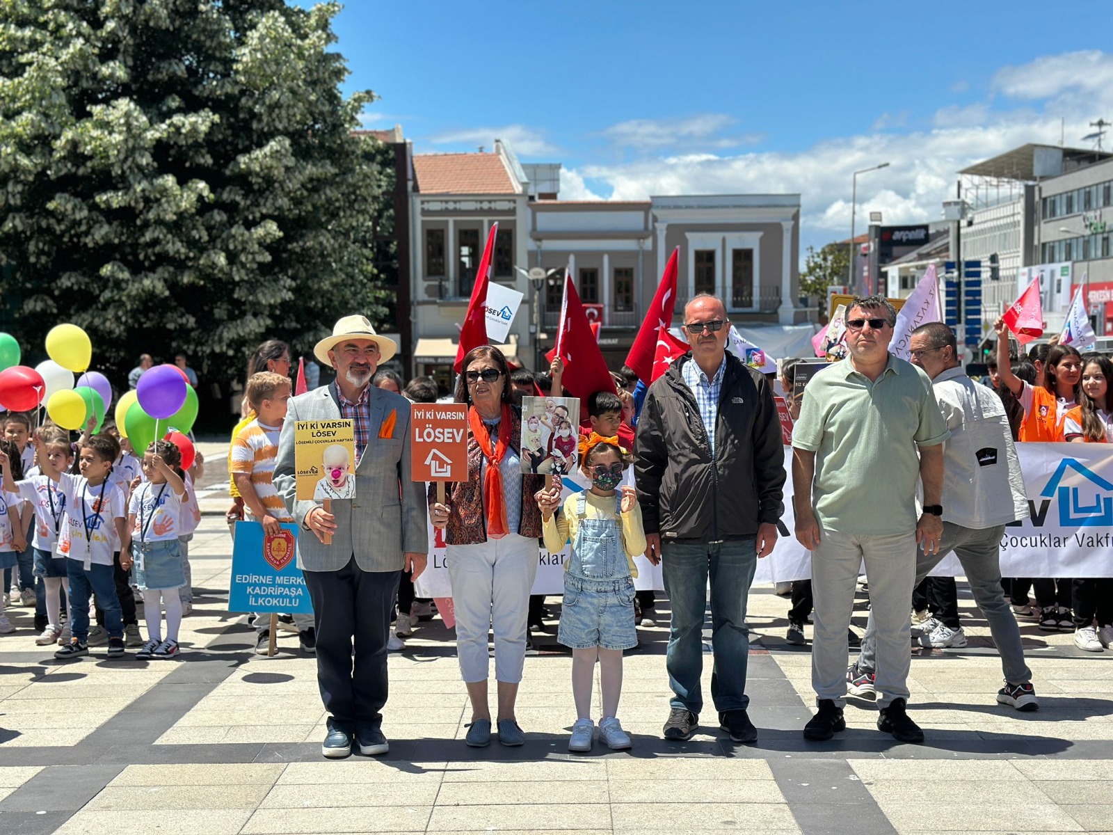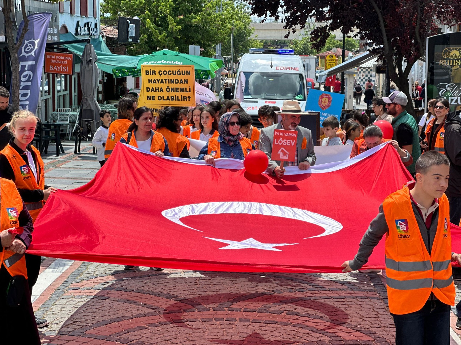 24. Uluslararası Lösemili Çocuklar Haftası dolayısıyla, Edirne’de çok sayıda öğrenci ve LÖSEV gönüllüsünün katılımıyla “LÖSEV Farkındalık Korteji” gerçekleştirildi...LÖSEV İl Temsilcisi Ceylan Toker, "Lösemili çocuklar için sağlıklı bir dünyanın umudu ile el ele vererek barış ve kardeşlik çağrısında bulunuyor, desteklerinizle tüm dünyaya duyuruyoruz" dedi...