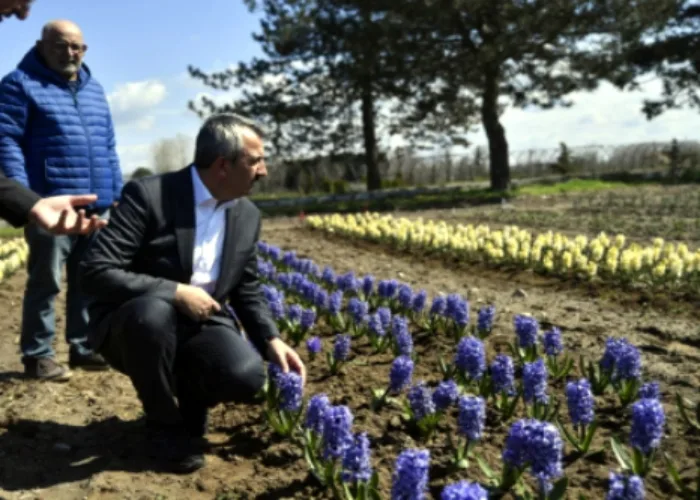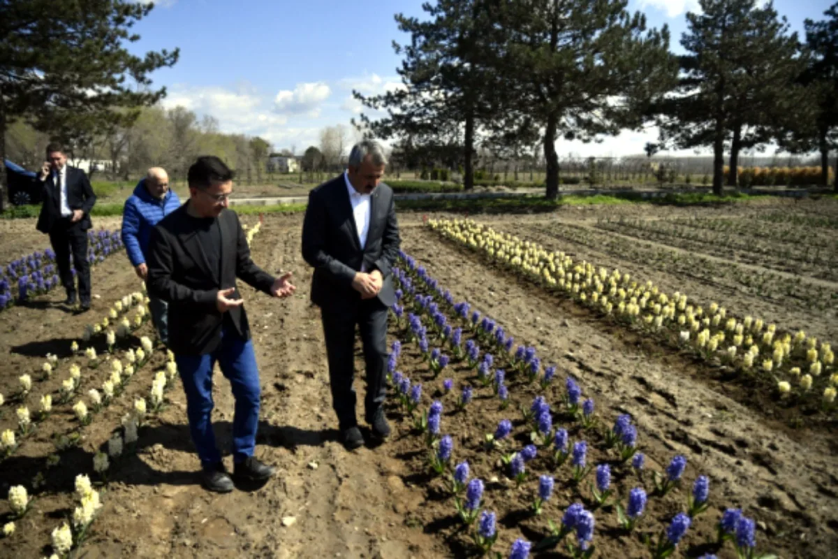 Vali Yunus Sezer, 10 bin adet lale, sümbül ve nergis soğanı üretimi yapılan bahçede incelemede bulundu