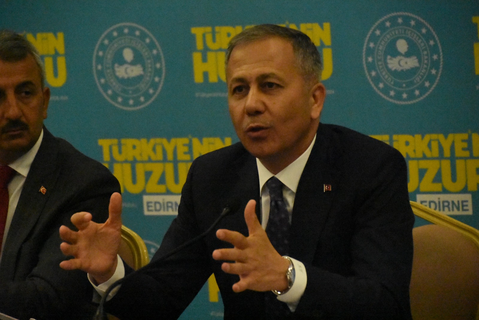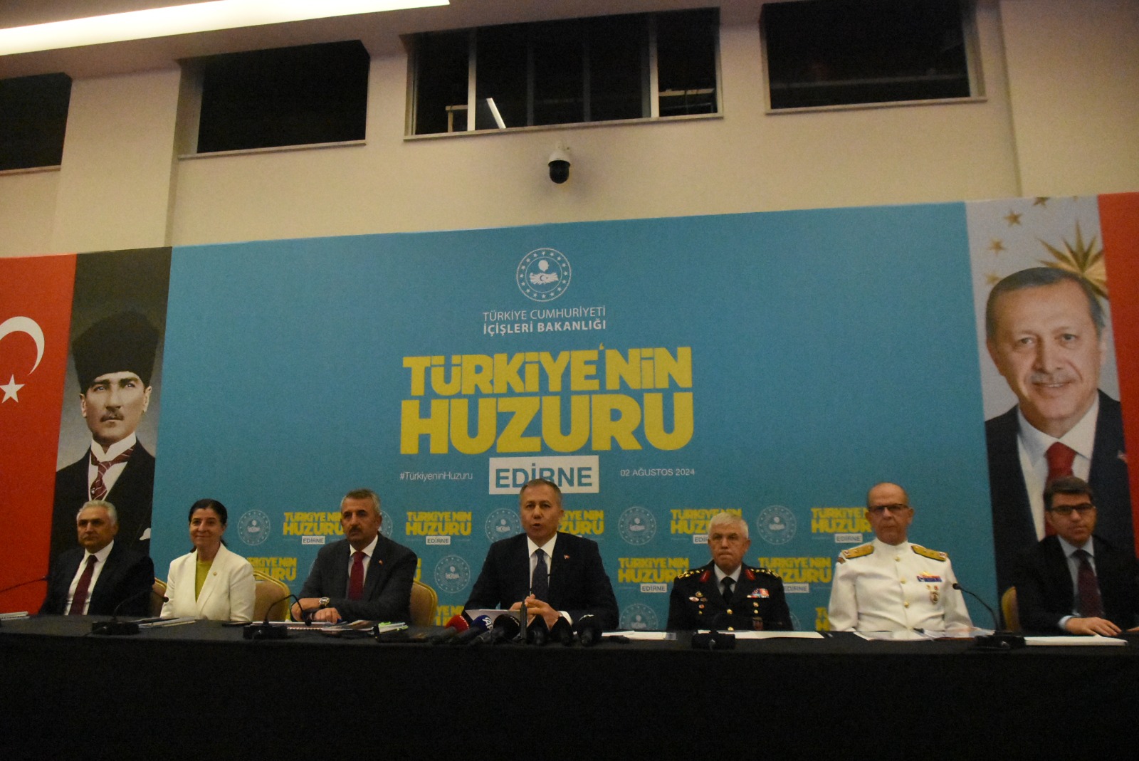 İçişleri Bakanı Ali Yerlikaya, Cuma namazı sonrası Edirne Valiliği’ni ziyaret ederken ardından Edirne Ticaret ve Sanayi Odası’nda (ETSO) gerçekleştirilen Türkiye’nin Huzuru toplantısına katıldı. Yerlikaya’ya burada Jandarma Genel Komutanı Orgeneral Arif Çetin, Sahil Güvenlik Genel Komutanı Ahmet Kendir ve Emniyet Genel Müdür Yardımcısı Ömer Urhal’ın da aralarında bulunduğu, kolluk kuvvetleri temsilcileri eşilk etti. ETSO’da gerçekleştirilen toplantının ardından Bakan Yerlikaya basın açıklaması yaparak bilgi verdi.