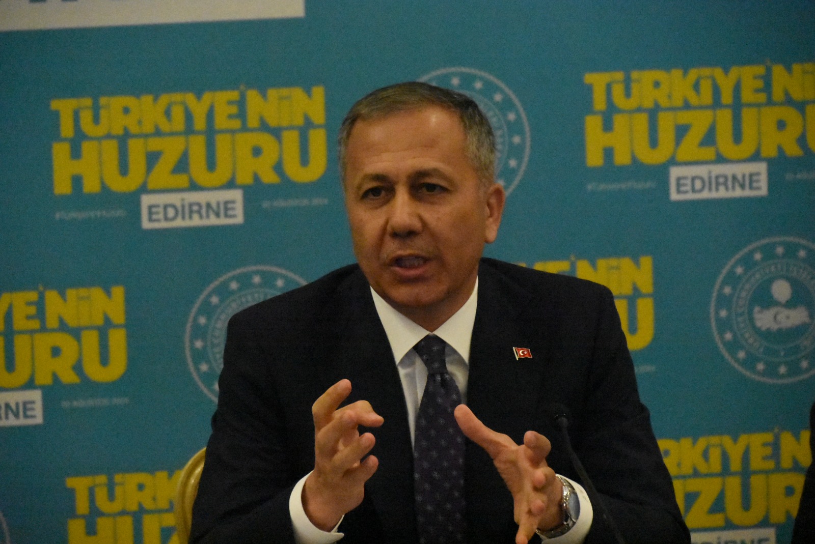 Edirne’de PKK terör örgütüyle mücadelede yılın ilk 7 ayında 90 kişinin tutuklandığını dile getiren Yerlikaya, “Edirne’de PKK terör örgütüyle ilgili bu yine yılın ilk 7 ayında 90 tutuklu 20 adli kontrol ve 7 terörist etkisiz hale getirildiğini belirtmek istiyoruz. FETÖ’yle ilgili 348 operasyonda 535 tutuklu 116 kontrol, DEAŞ’la ilgili 18 operasyon, 12 tutuklu, 2 adli kontrol, diğer marjinal sol terör örgütleriyle ilgili 21 operasyon, 8 tutuklu ve 12 adli kontrol olduğunu da görüyoruz. Burada 3 sözde üst düzey teröristin de etkisiz hale getirildiğini, biri turuncu ikisi de gri olmak üzere diye sözlerimizi tamamlayalım” şeklinde konuştu.