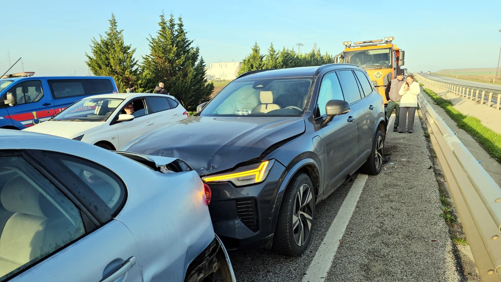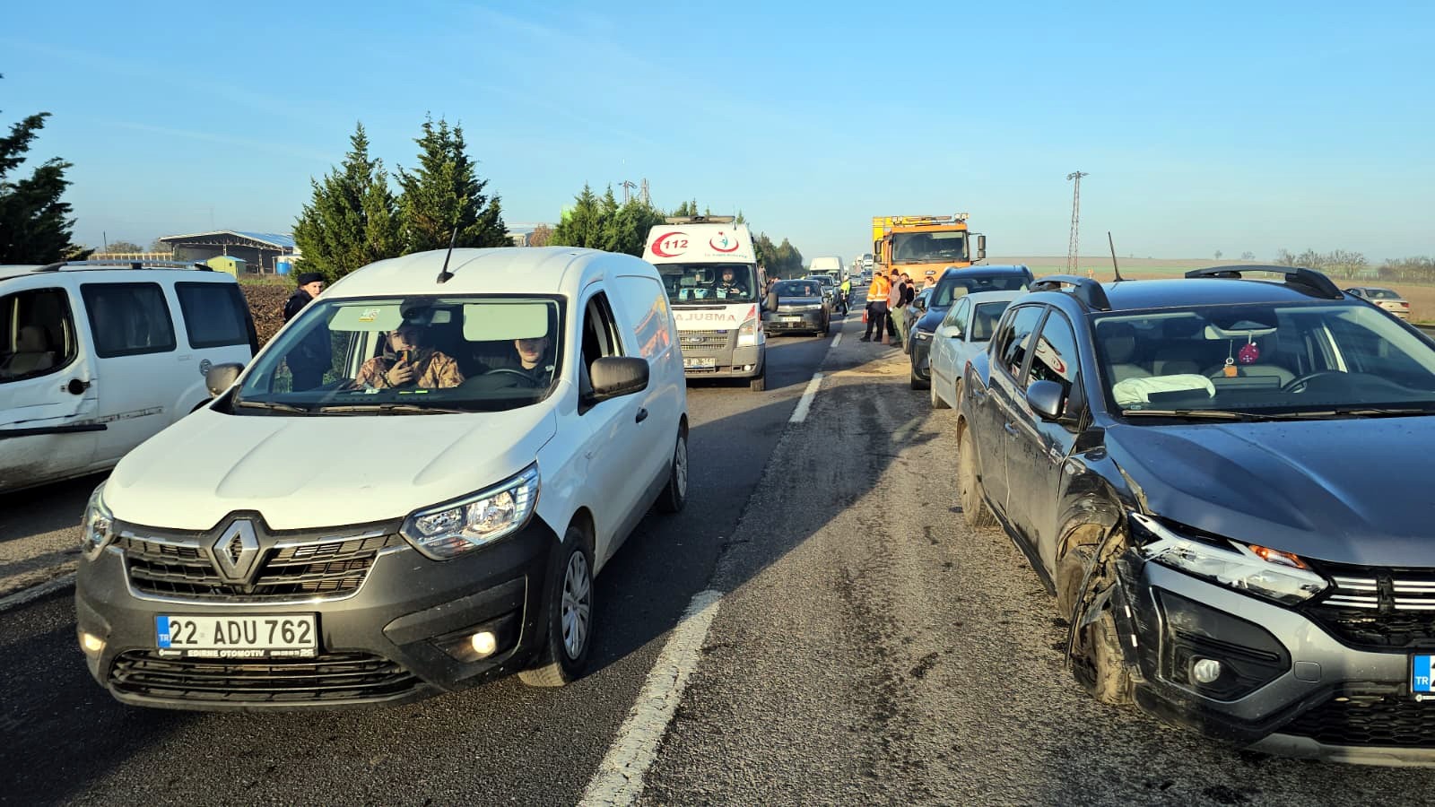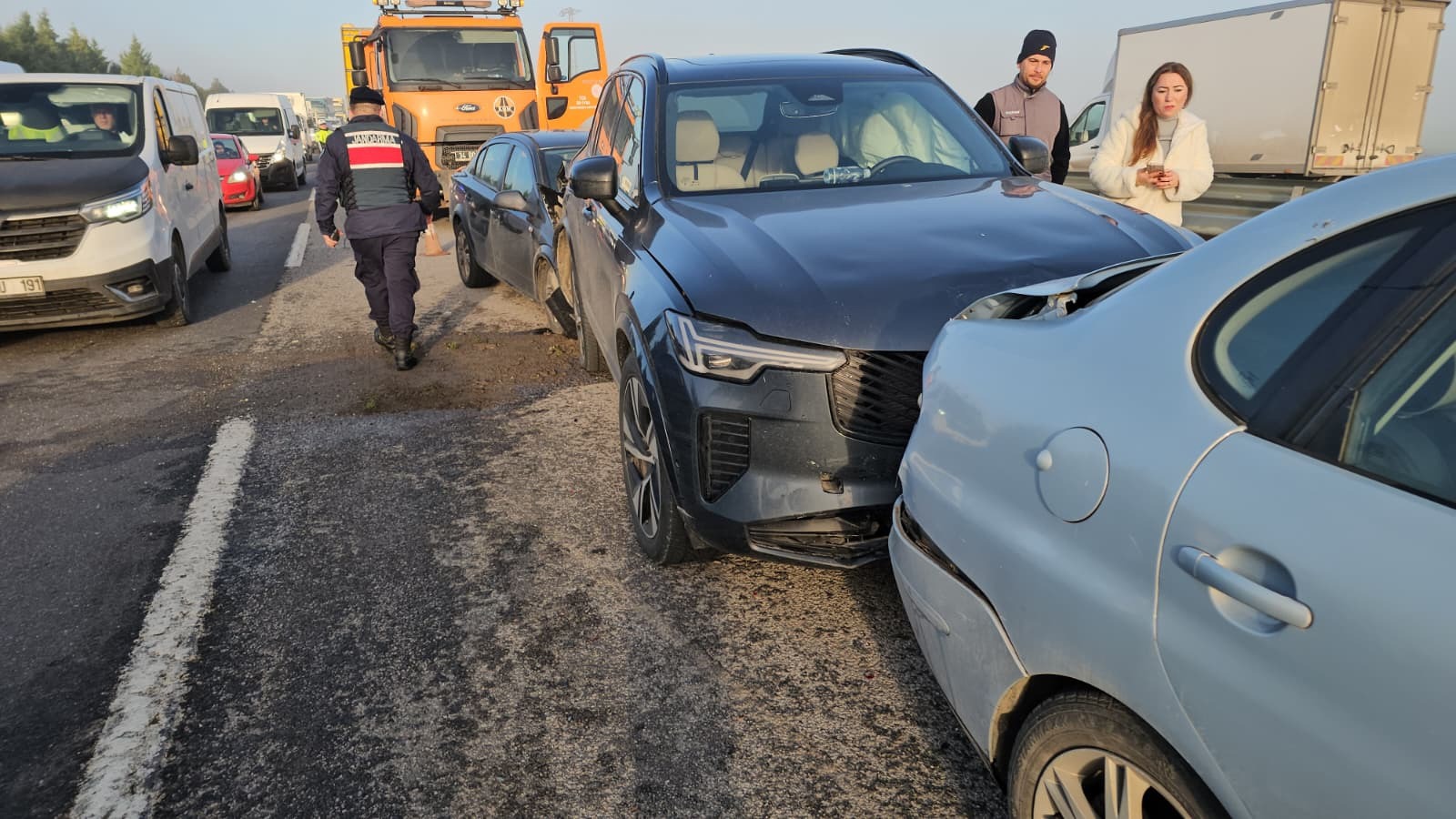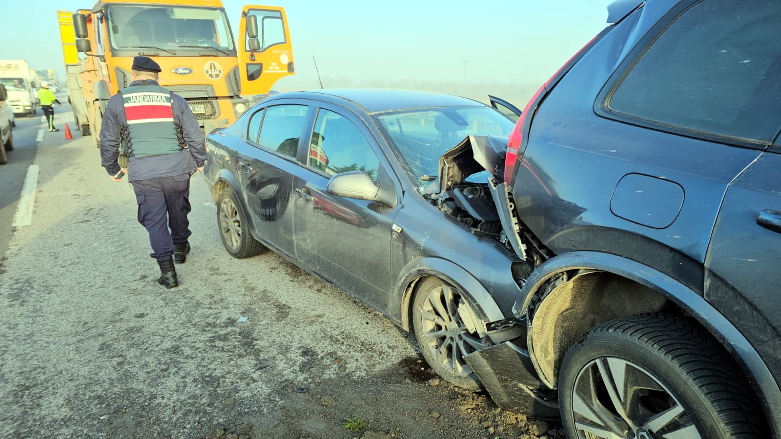 Kazaya karışan sürücülerden biri, “Normal hızımızda gidiyorduk. Çok yoğun bir sis vardı, 10 santimetre önümüzü bile göremiyorduk. Birden önümüze bir araç çıktı. Son anda direksiyonu kırdık, solumuzdan biraz hasar yedik. Çok şükür canımıza bir şey olmadı” dedi.