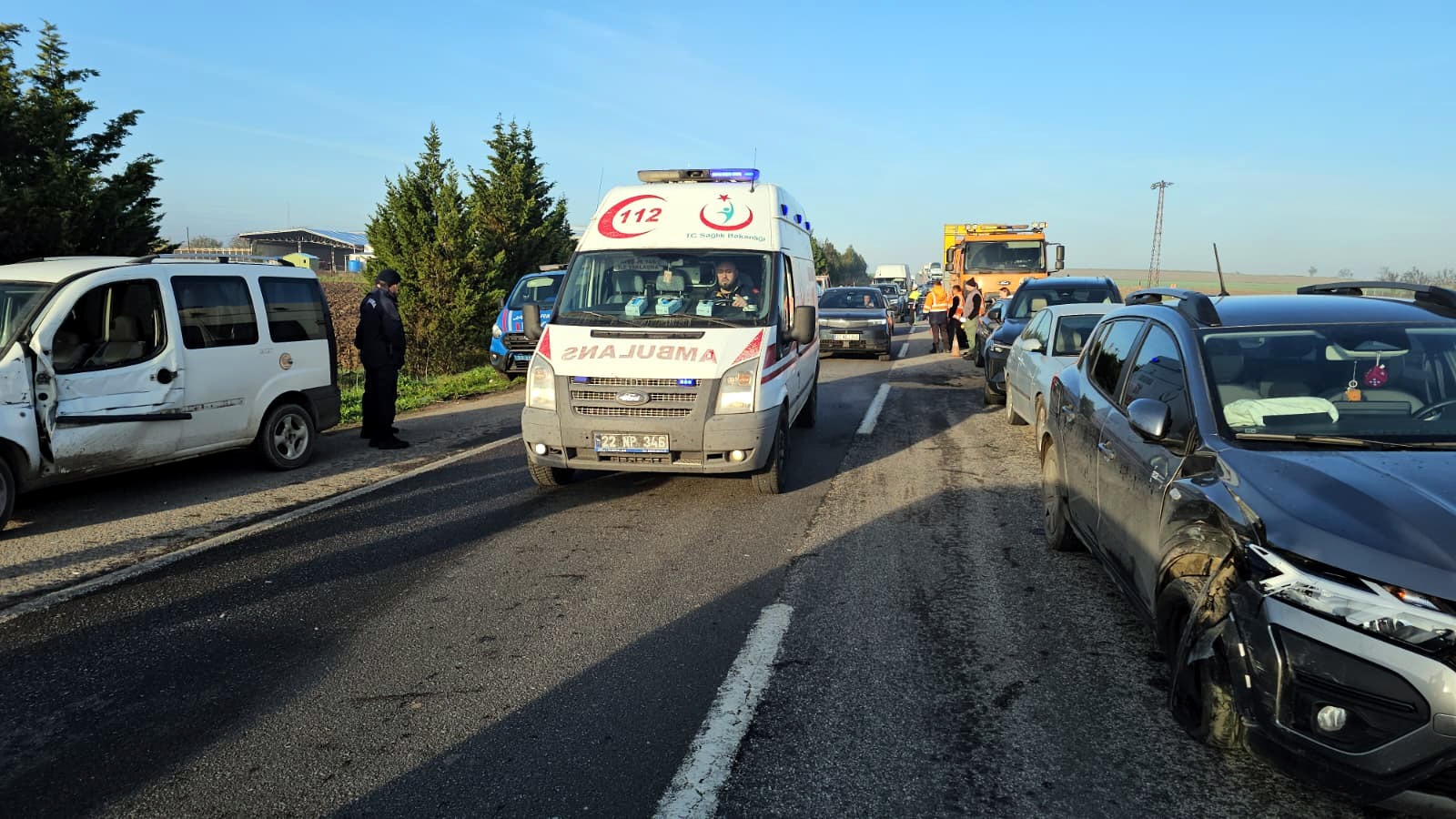 Çevredekilerin ihbarı üzerine kaza yerine çok sayıda polis, jandarma, sağlık ve itfaiye ekipleri sevk edildi. Yaralılar, ambulanslarla Trakya Üniversitesi Tıp Fakültesi Hastanesi’ne kaldırıldı. Ekipler, kara yolunun Edirne- Havsa yönünü bir süre trafiğe kapattı.