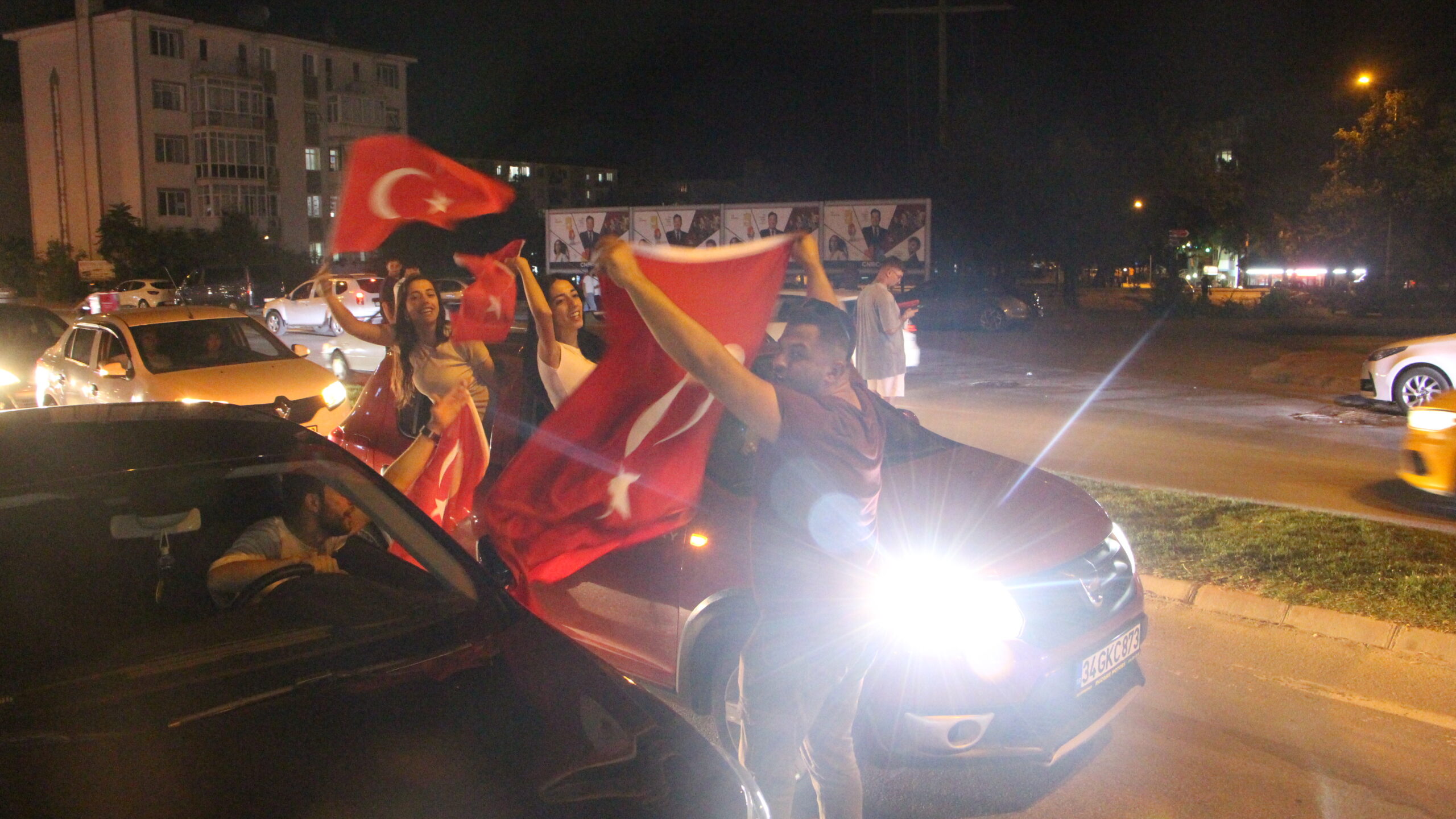 Edirneliler, marşlar söyleyerek millilerin zaferini kutlarken, bazı vatandaşlar da araçlarıyla zafer turu attı.