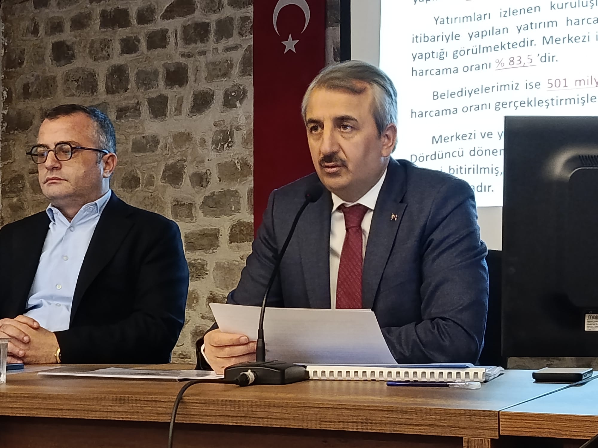 Vali Sezer, projelerdeki harcama oranlarına dikkat çekerek, “Kuruluşlarımızca Valiliğimize gönderilen raporlara göre, İlimizde kamu kuruluşlarımızın 2025 yılı yatırım programlarında küçük, orta ve büyük ölçekli 386 proje yer almaktadır. Bu projelerin toplam bedeli yaklaşık 81 milyar TL’yi bulmaktadır. Bu projeler için önceki yıllarda 26 milyar TL harcanmış, 2025 yılında da 22 milyar TL ödenek kullandırılması öngörülmüştür. Dördüncü yatırım dönemi sonuna kadar yapılan çalışmalar dahilinde 18 milyar TL harcama yapılarak % 82 yıllık harcama oranı sağlanmıştır. Yatırımları izlenen kuruluşlar olarak değerlendirildiğinde; 2025 yılının dönemi sonu itibariyle yapılan yatırım harcamalarımın 17,5 milyar TL’sini merkezi idare kuruluşlarımızın yaptığı görülmektedir. Merkezi idare kuruluşlarımızın bu harcama miktarı ile sağladıkları yıllık harcama oranı % 83,5’dir. Belediyelerimiz ise 501 milyon TL tutarında yatırım harcaması yaparak % 50 ‘lik bir yıllık harcama oramı gerçekleştirmişlerdir” dedi.