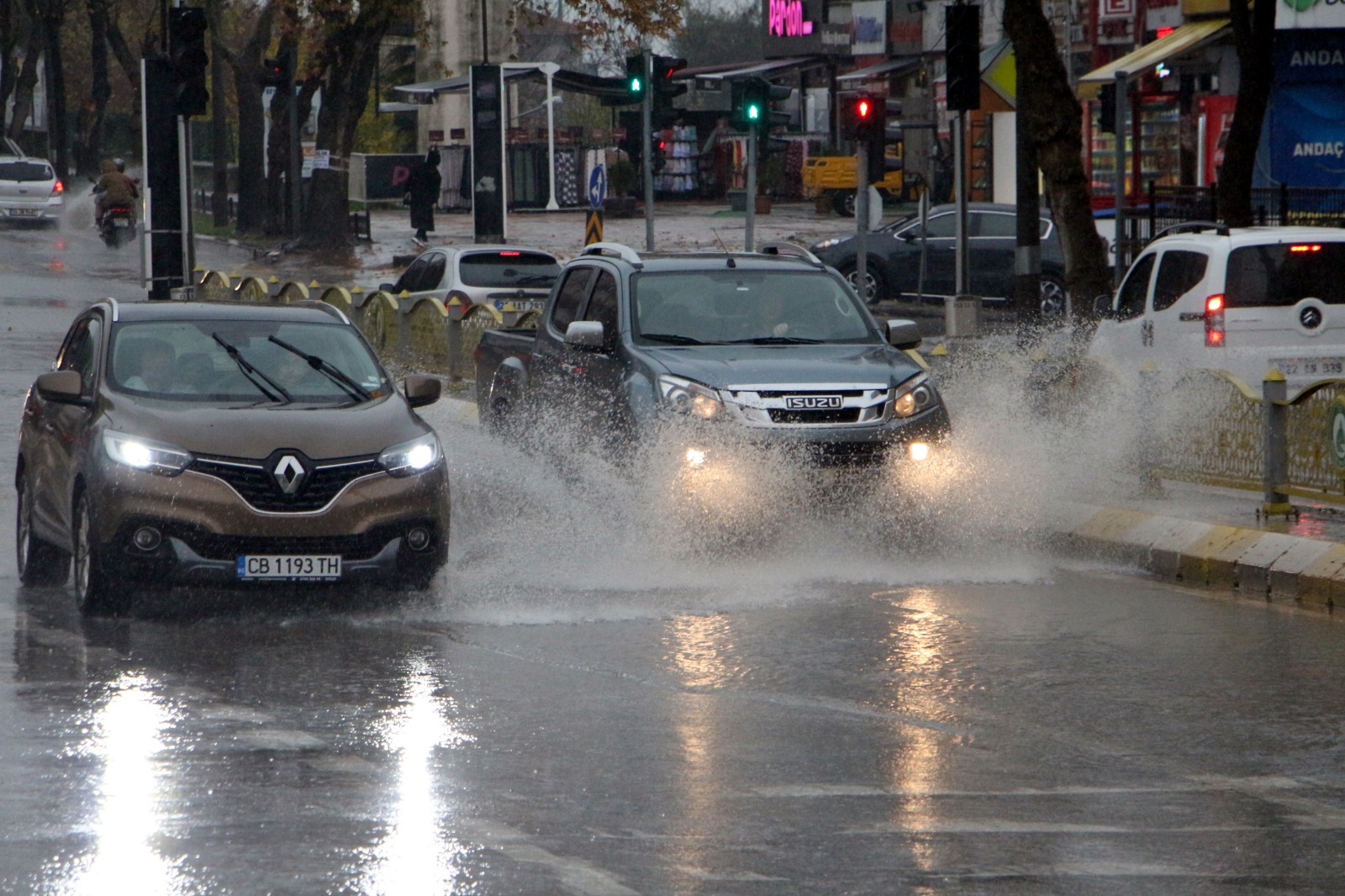 Edirne’de sağanak etkili olurken, sürücüler ve yayalar su birikintisinin oluştuğu yollarda zor anlar yaşadı.