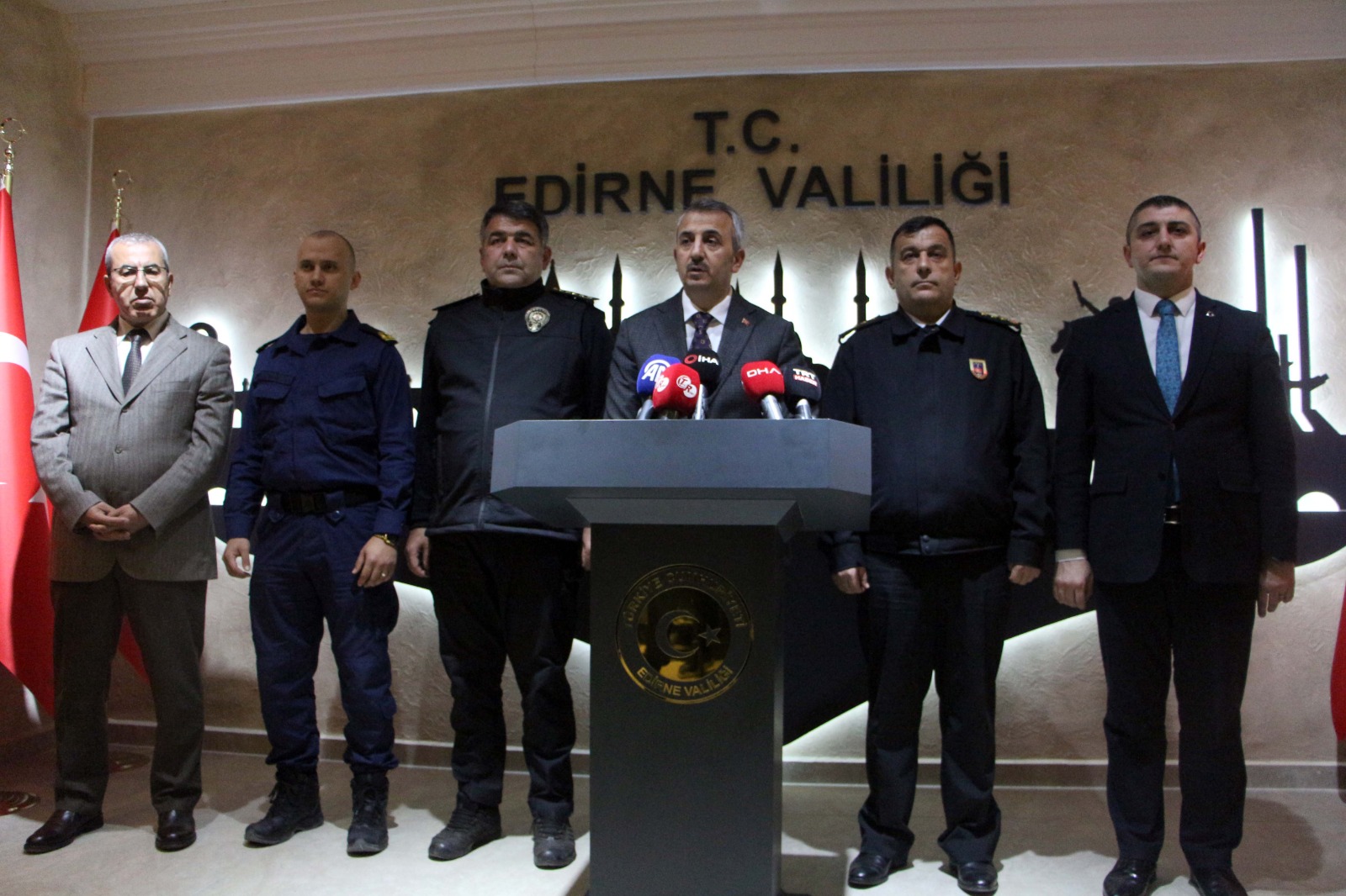 Edirne Valisi Yunus Sezer, kolluk kuvvetleriyle Ekim ayında kentteki asayiş ve güvenlik konularını değerlendirdikleri aylık asayiş toplantısı sonrası, basın toplantısıyla kamuoyunu bilgilendirdi. Toplantıda Sezer’e, İl Emniyet Müdürü Onur Karaburun, İl Jandarma Komutanı Albay Mehmet Kasım Ermiş, Sahil Güvenlik Komutanlığı adına Üsteğmen Yunus Can Efe, Trakya Gümrük ve Dış Ticaret Bölge Müdürü Nihat Kınık ve İl Göç İdaresi Müdürü Musa Aşılıoğlu eşlik etti.