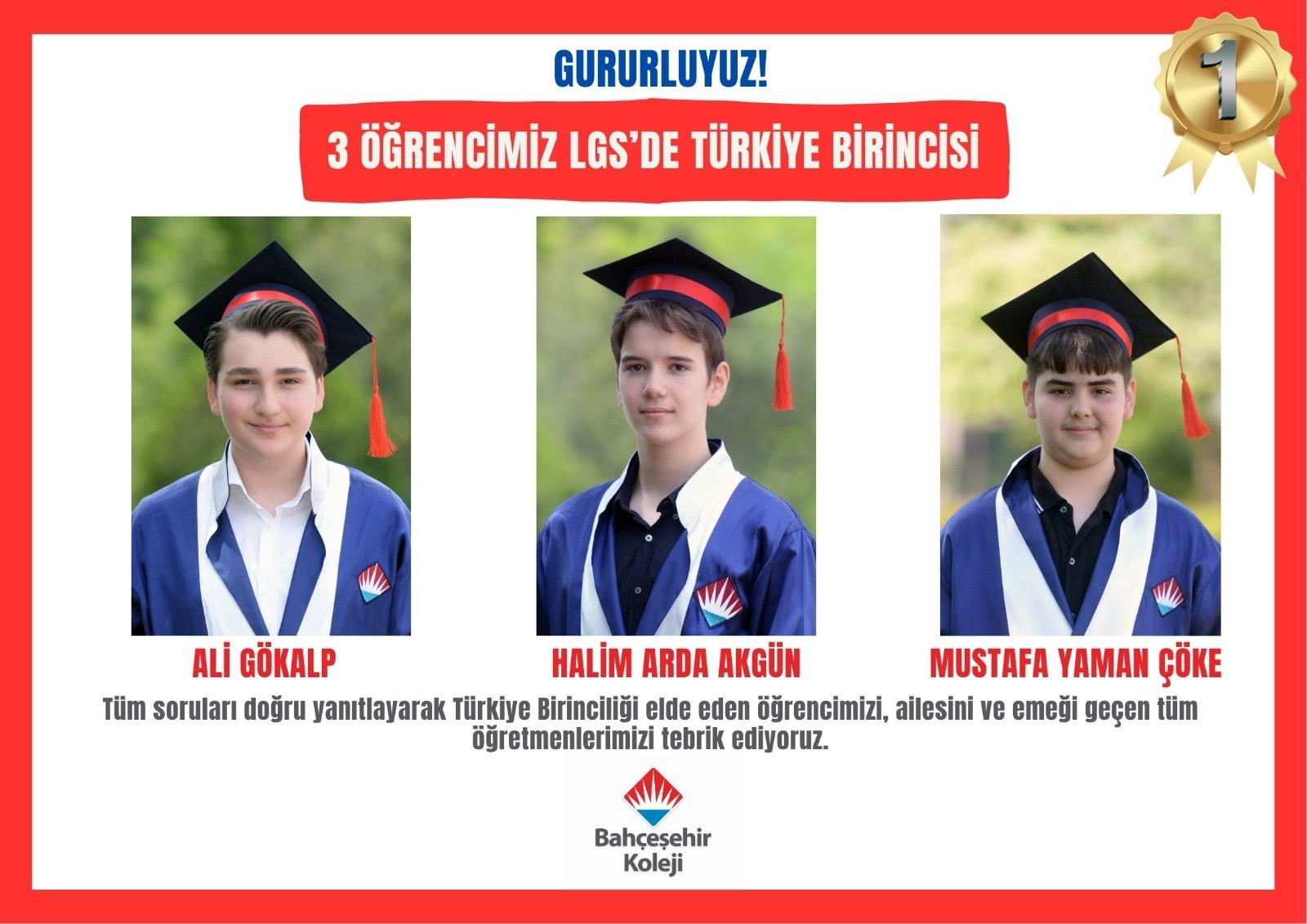 Öğrencilerin merakla beklediği LGS sonuçları dün 10.00 itibariyle Milli Eğitim Bakanlığı tarafından açıklandı. Sonuçlarla birlikte, Edirne de büyük gurur yaşadı. Edirne Bahçeşehir Koleji öğrencileri Ali Gökalp, Halim Arda Akgün ve Mustafa Yaman Çöke tüm soruları doğru yanıtlayarak Türkiye birincisi oldu. Sonuçlarla birlikte Edirne Bahçeşehir Koleji, Türkiye rekoru kırarak, Türkiye genelinde en fazla birinci çıkaran okul unvanını aldı.