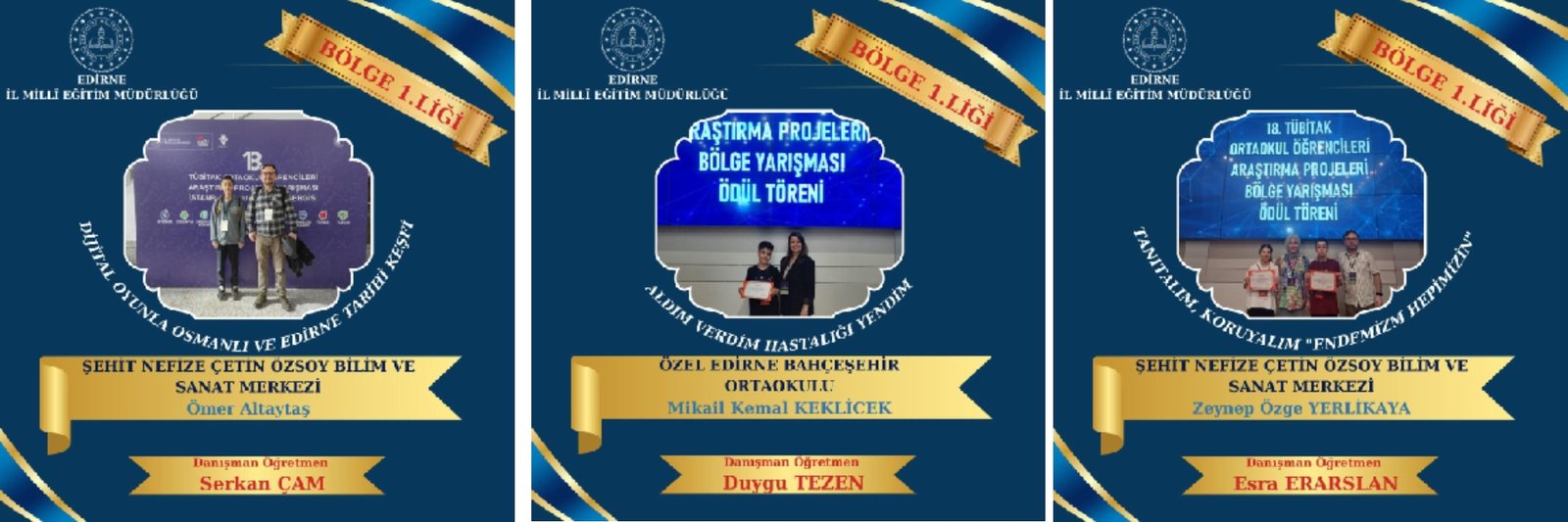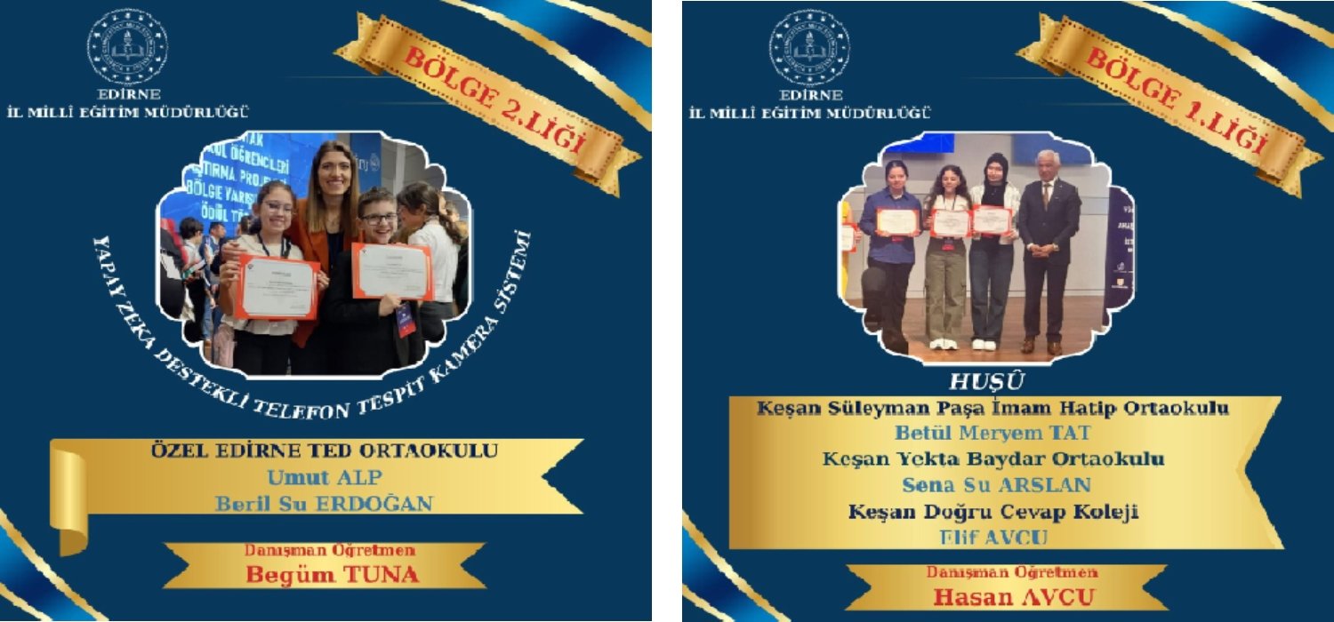 Türkiye Bilimsel ve Teknolojik Araştırma Kurumu’nun (TÜBİTAK) ortaokul öğrencilerine yönelik düzenlediği ‘İstanbul Avrupa Yakası bölge finaline katılan Edirneli öğrenciler, aldıkları 4 birincilik ve ikincilik alarak yarışmaya damga vurdu.