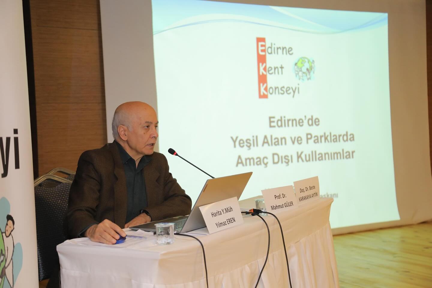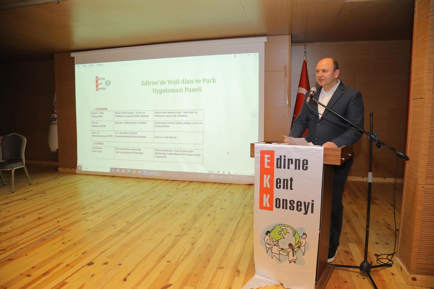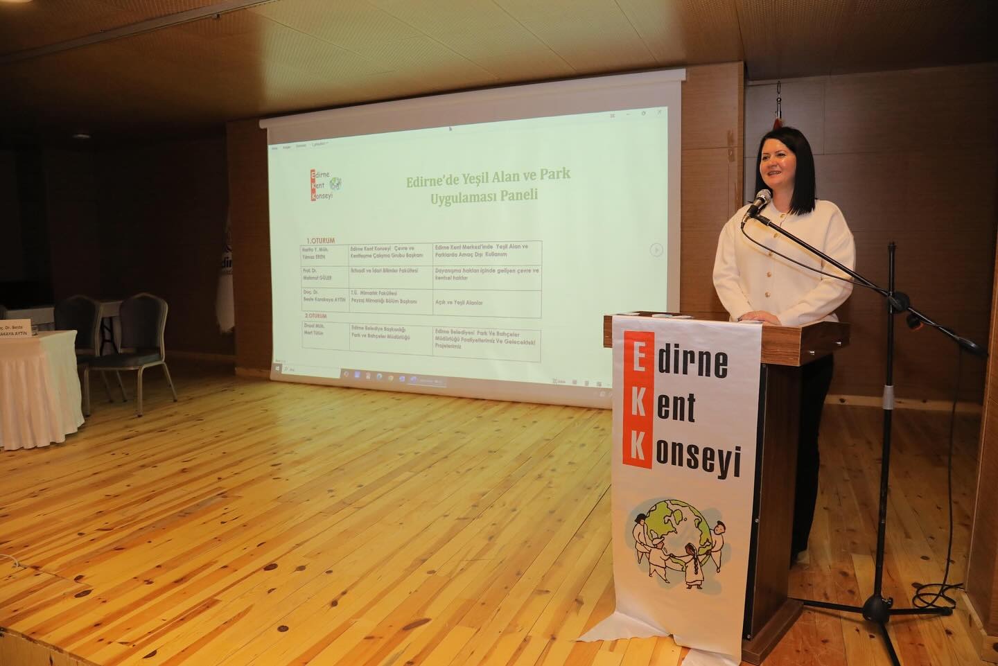 Panelde; Trakya Üniversitesi İktisadi ve İdari Bilimler Fakültesi’nden Prof. Dr. Mahmut Güler, Trakya Üniversitesi Mimarlık Fakültesi Peyzaj Mimarlığı Bölümünden Doç. Dr. Beste Karakaya Aytin, Edirne Kent Konseyi Çevre ve Kentleşme Çalışma Grubu Başkanı Harita Yüksek Müh. Yılmaz Eren ve Edirne Belediye Başkanlığı Park ve Bahçeler Müdürlüğü sunum gerçekleştirdi.