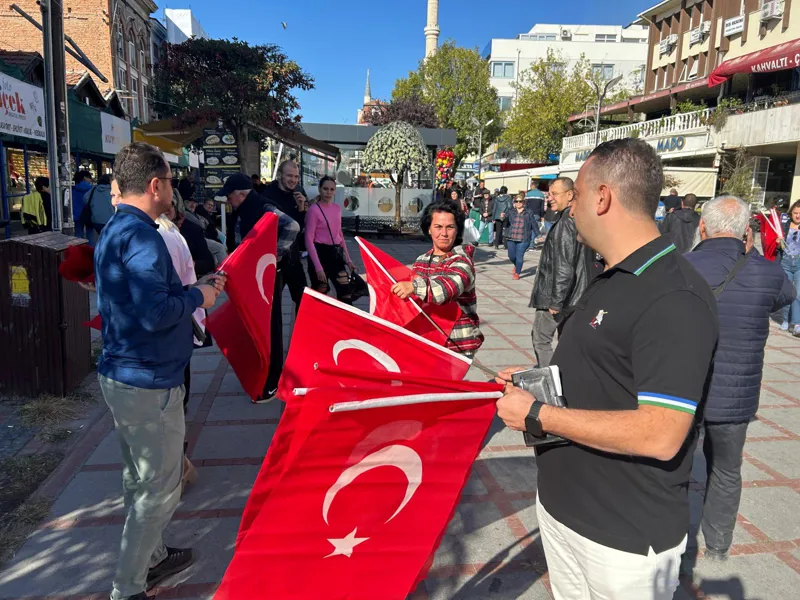 Belediye ekipleri vatandaşlara bayraklarını halka ve iş yerlerine hediye ederken, vatandaşlar da bu anlamlı etkinliğe büyük bir ilgiyle katıldı. Belediye tarafından Saraçlar ve Çilingirler Caddesi’nde 3 bin adet Türk bayrağı dağıtıldı.