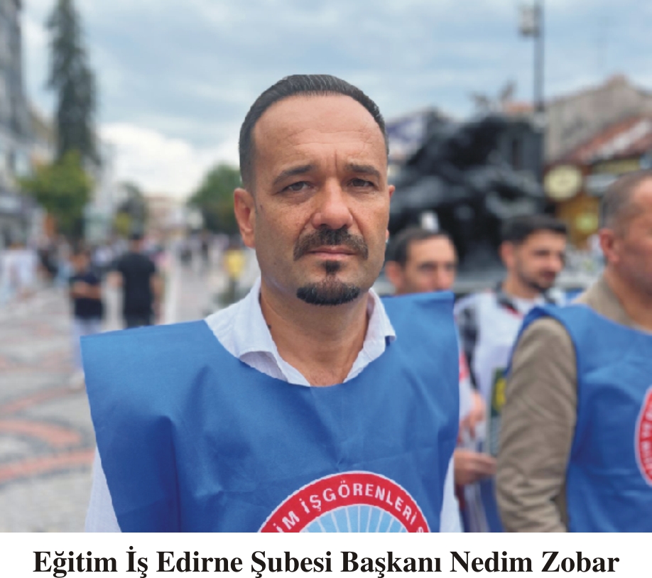 Eğitim İş Edirne Şubesi Başkanı Nedim Zobar, okullarda temizlik ve güvenlik personeli sorununun devam ettiğini, sorunun çözümünün okul aile birlikleri aracılığıyla velilere yüklendiğine dikkat çekerek, “Her vatandaşımızın Anayasal hakkı olan eğitim, devlet okullarında paralı hale mi geliyor?” diye sordu.