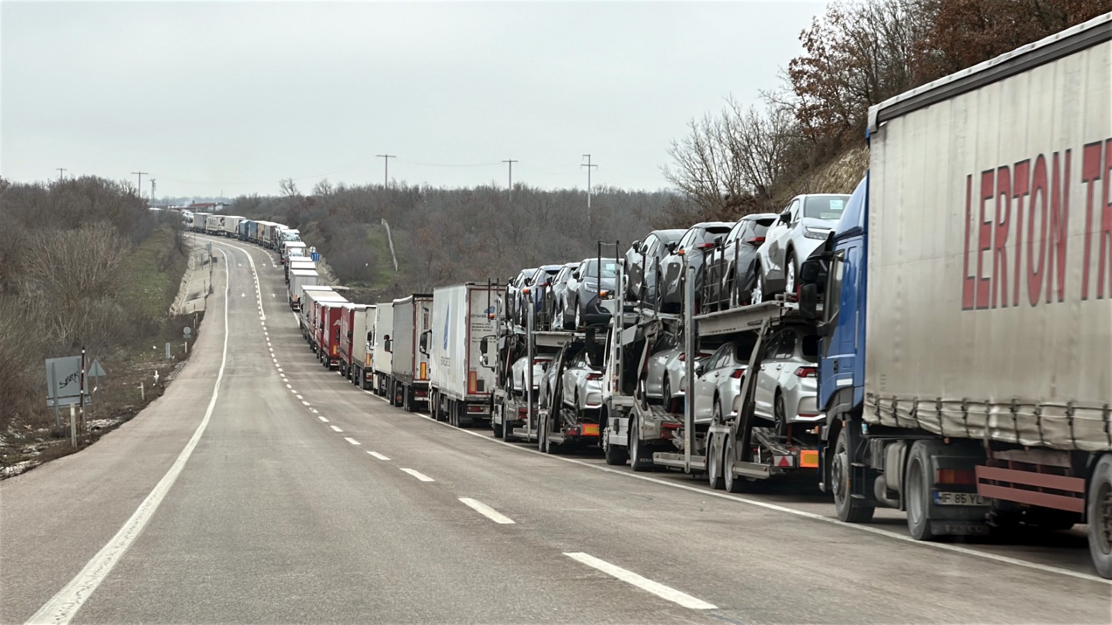 Türkiye’den aldıkları ihracat yüklerini Avrupa’ya götürmek için Edirne’den Bulgaristan’a açılan Hamzabeyli Sınır Kapısı’na gelen TIR sürücüleri, 11 kilometre kuyruk oluşturdu.