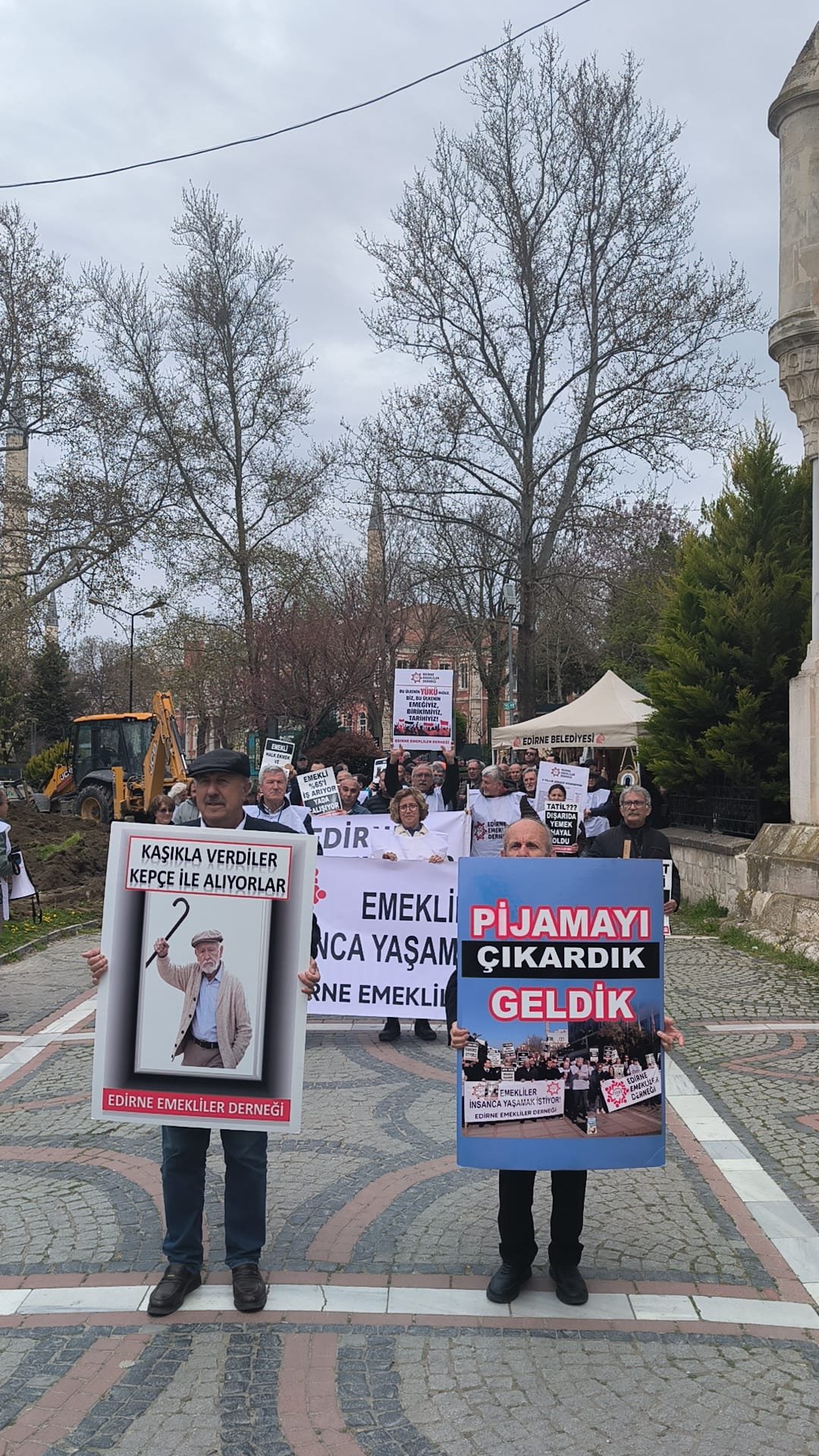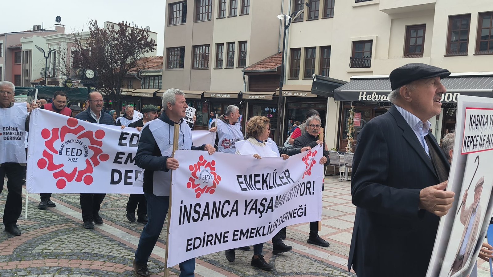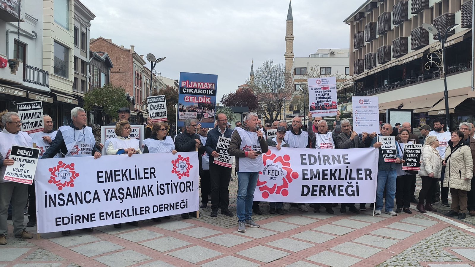 Derneğe üye çok sayıda emekli, Eski Cami yanında toplandı. Emekliler sloganlar eşliğinde Çilingirler Çarşısını geçip Saraçlar caddesine geldi. Ülkedeki emeklilerin yüzde 85’inin açlık sınırının altında maaşla yaşadığına dikkat çekilen basın açıklamasında, hükümetin emeklilere kaynak ayırmaması eleştirildi. Basın açıklamasını Edirne Emekliler Derneği Başkanı Ahmet Ziya Yaz okudu.
