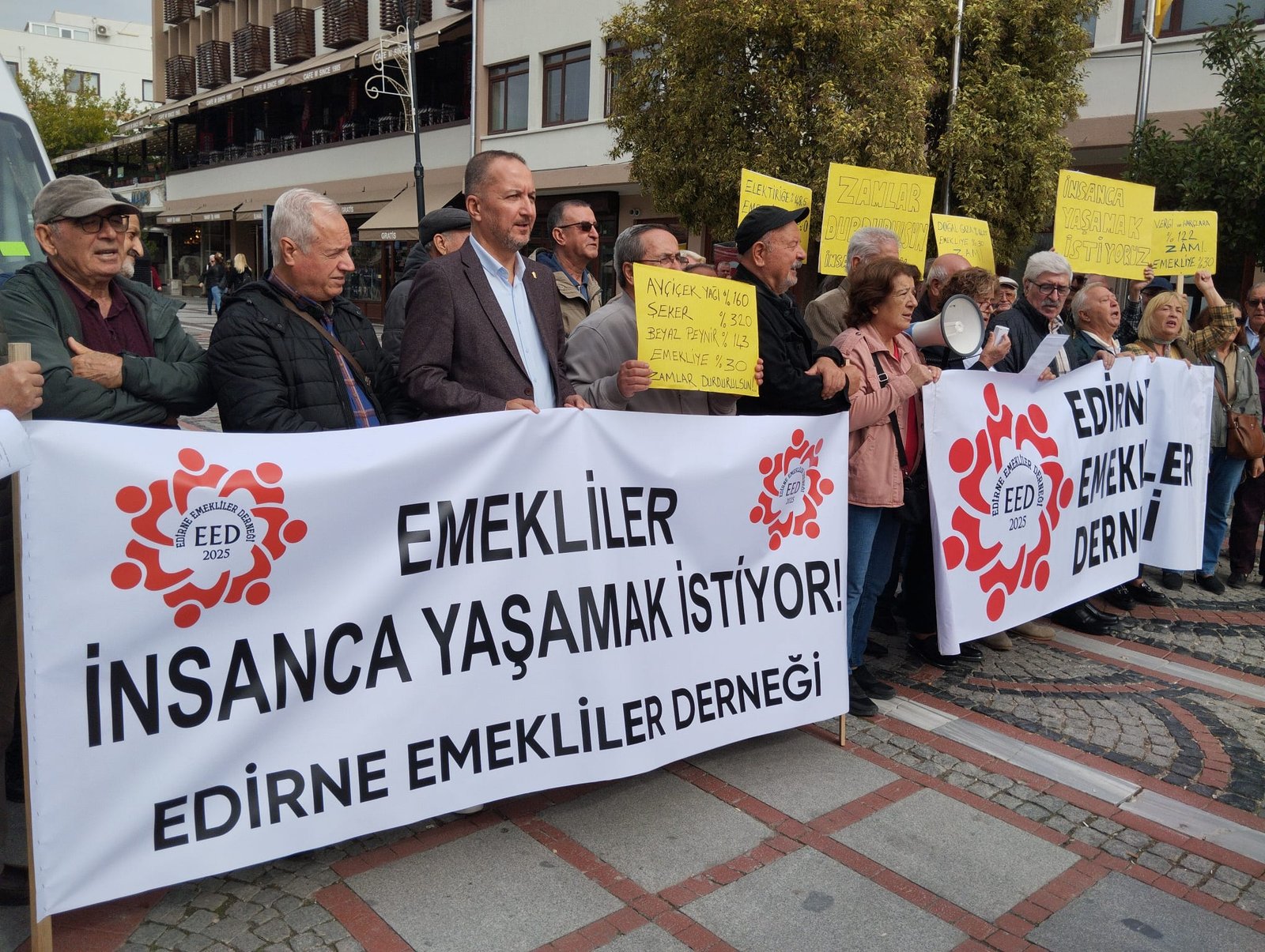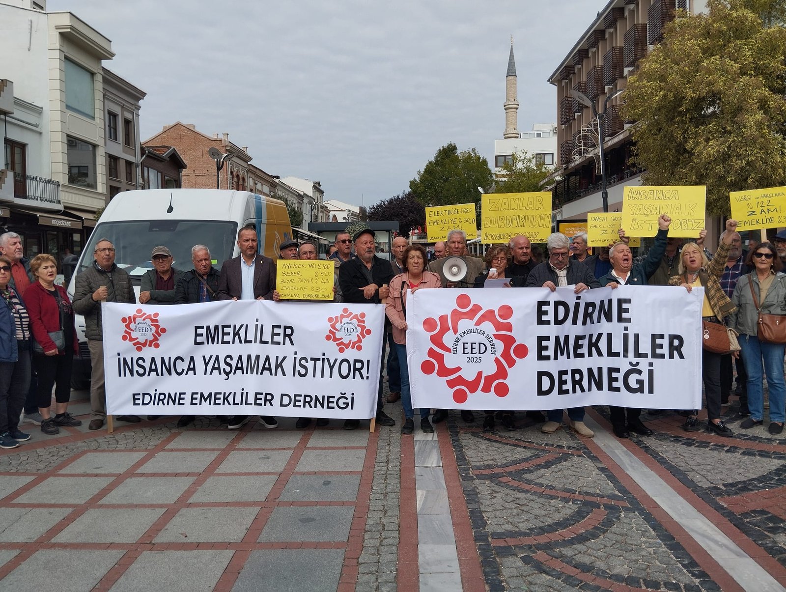 Çotuk’un açıklamasında, TÜRK-İş’in açıkladığı Eylül ayı açlık ve yoksulluk sınırı rakamlarına dikkat çekilerek, “Bizler ‘Demokrasi mücadelesinden emekli olunmaz’ diyen Edirne Emekliler Derneği olarak, ‘hak verilmez alınır’ haykırışıyla yine meydanlardayız. Türk-İş’in eylül 2025’teki araştırma raporuna göre; dört kişilik bir ailenin sadece sağlıklı beslenmesi için açlık sınırı 27 bin 970 TL, yoksulluk sınırı ise 91 bin 109 TL olarak açıklanmıştır. Gıda fiyatlarında yüzde 3,17 yükseliş görülürken, mutfak enflasyonu yüzde 41’e ulaşmıştır. TÜİK açıklamalarında bile aylık enflasyon yüzde 3,23 olarak belirtilmiştir. Et, tavuk, yumurta, sıvı yağ gibi temel gıda ürünlerinde ciddi fiyat artışları yaşanırken, emekli ve dar gelirli vatandaşların alım gücü günden güne azalmaktadır. En düşük emekli aylığı olan 16 bin 881 TL hızla erimeye devam ediyor” denildi.