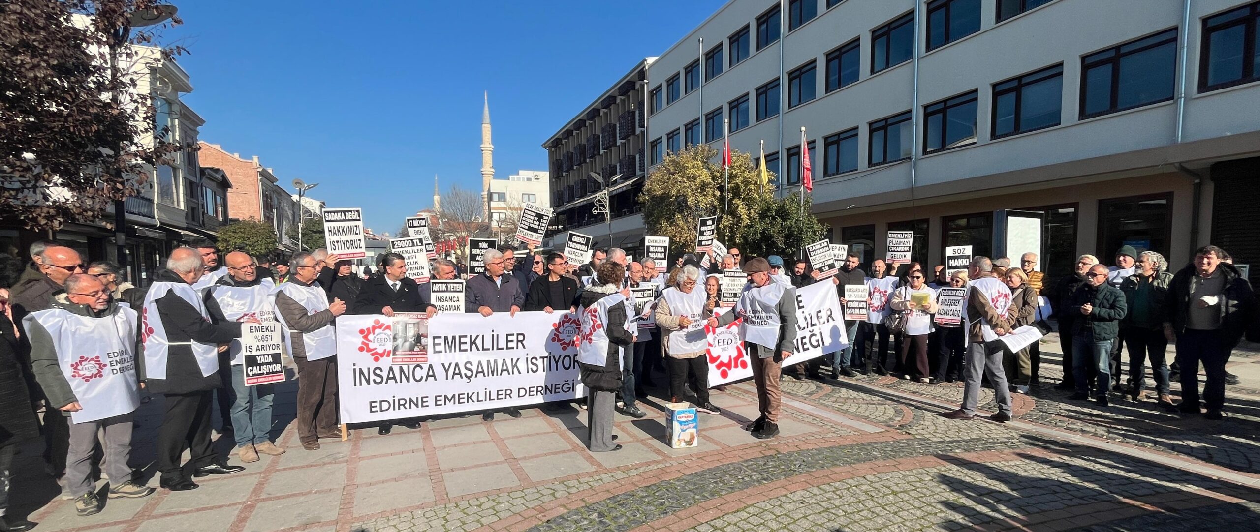Edirne Emekliler Derneği tarafından, ülke genelindeki yaklaşık 15 milyon emeklinin 2026’da alacağı zammın belli olmasına kısa süre kala, emeklilerin adil ve insanca yaşayabilecekleri ücret talebinde bulunmak üzere basın açıklaması gerçekleştirildi…Emeklilerin, ödeyemedikleri faturaları yaktığı açıklamada konuşan Dernek Başkanı Ahmet Ziya Yaz, “Açlık sınırı 29 bin 828 lira, yoksulluk sınırı ise 97 bin 159 lira iken, emeklilerden 16 bin 881 lira gibi onur kırıcı düşük maaşla yaşamasını istenmesi insanlık dışıdır. Yıllardır maaş diye bizlere verilenler sadakadır. Bizler sadaka değil hakkımızı istiyoruz” dedi…