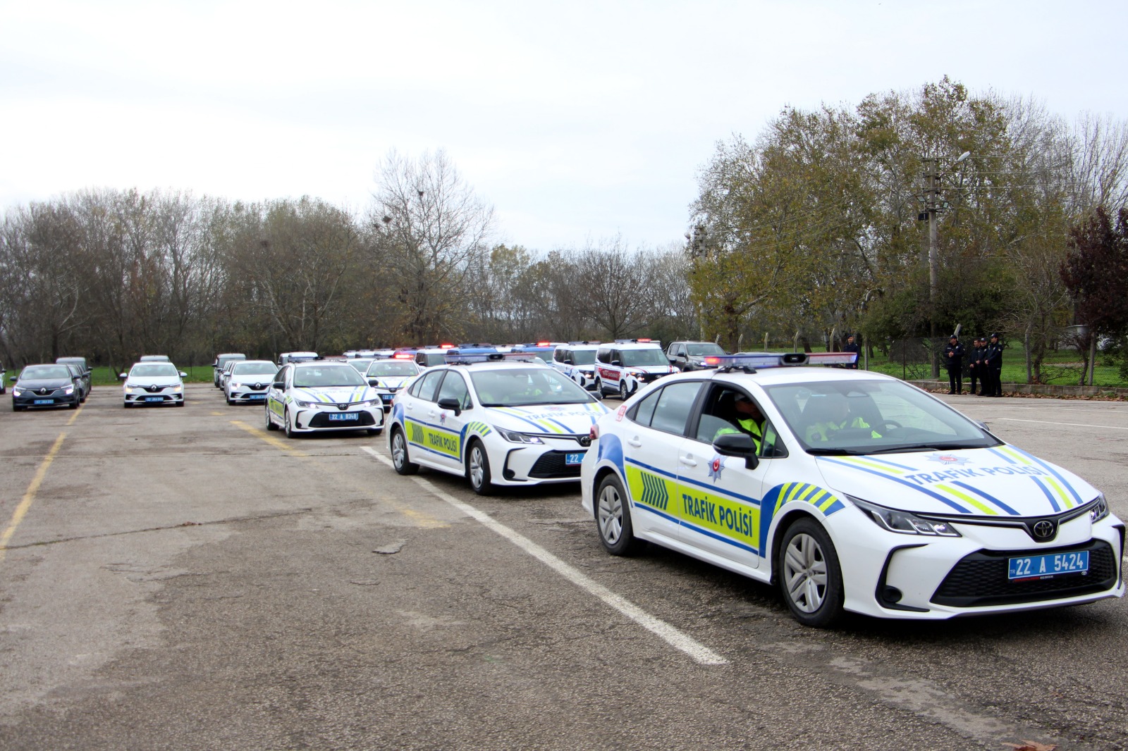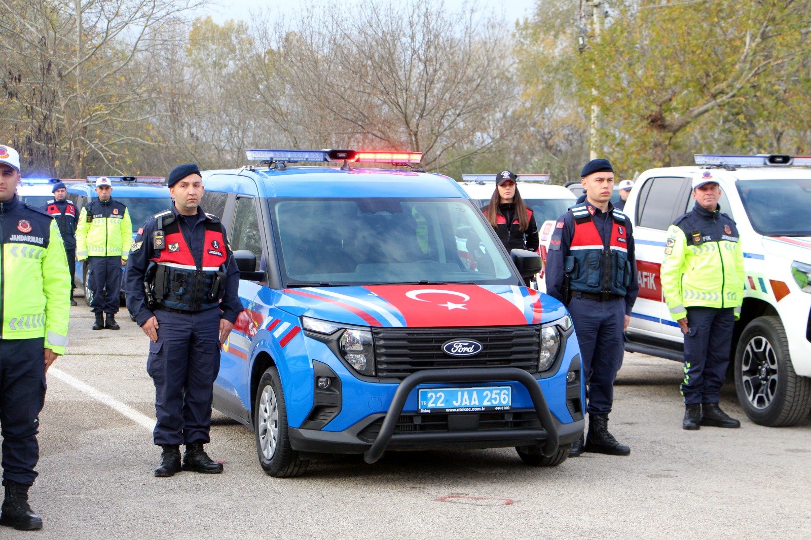Edirne’de emniyet müdürlüğü ve jandarma teşkilatlarına tahsis edilen 82 araç için teslim töreni gerçekleştirildi.