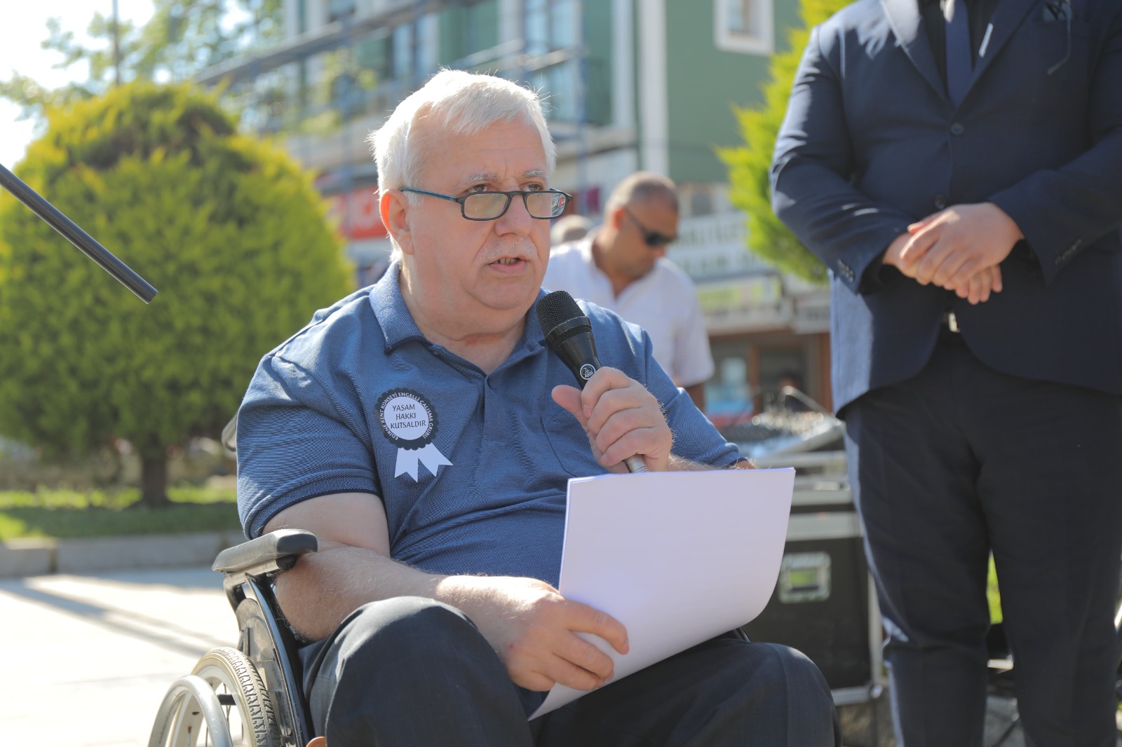 Törende basın açıklamasını, engelliler adına Erol Adem Düzkes okudu. Düzkes, engelli bireylerin haklarının korunması ve adaletin sağlanması adına toplandıklarını belirterek, “Unutmayalım ki engellilik, bir eksiklik değil; farklılıklarla zenginleşen bir insanlık hâlidir. Her birey gibi engelli bireylerin de onurlu bir yaşam sürme, eşit şartlarda eğitim alma, çalışma hayatına katılma, ulaşım, sağlık ve sosyal hizmetlerden faydalanma hakları vardır. Bu haklar bir lütuf değil, birer insan hakkıdır. Ancak ne yazık ki bugün hâlâ birçok engelli birey, günlük yaşamda ayrımcılığa, dışlanmaya ve hak ihlallerine maruz kalıyor. Sadece fiziksel bariyerler değil, toplumun ön yargıları, duyarsızlığı ve yetersiz altyapı da bizlerin hayatlarını zorlaştırıyor” dedi.