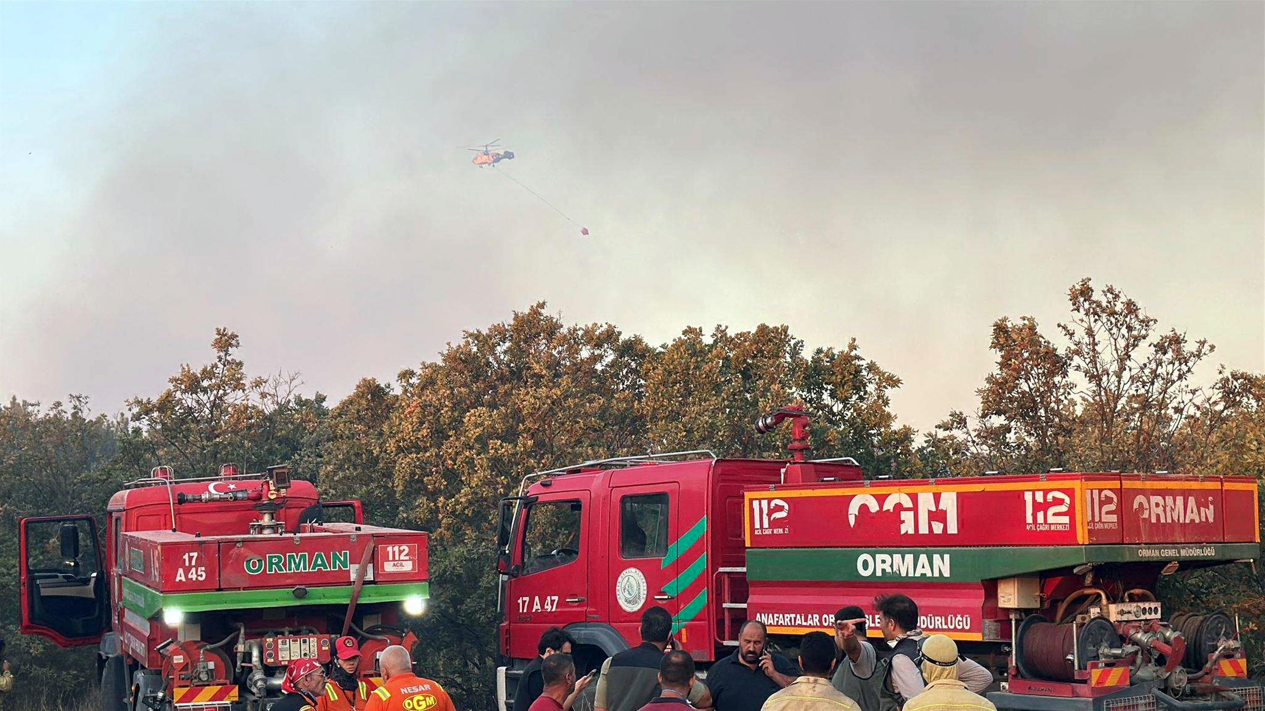 Gece boyunca karadan süren söndürme çalışmaları, sabahın ilk ışıklarıyla birlikte hava desteğiyle devam etti.