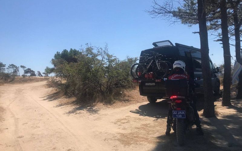 Enez’de Jandarma Motosikletli Asayiş Timi, ormanlık alanlara izinsiz giriş yapanlara karşı denetimlerini arttırdı.