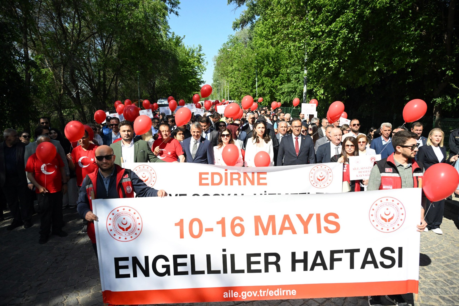Edirne Valiliği tarafından Aile Günü ve Engelliler Haftası kapsamında düzenlenen yürüyüş, Lozan Caddesi üzerindeki Söğütlük Millet Bahçesi önünden başladı. Yürüyüşe Edirne Valisi Yunus Sezer, Edirne Belediye Başkanvekili Cenk Ergüden, kurum ve kuruluş temsilcileriyle çok sayıda engelli ve aileleri katıldı.
