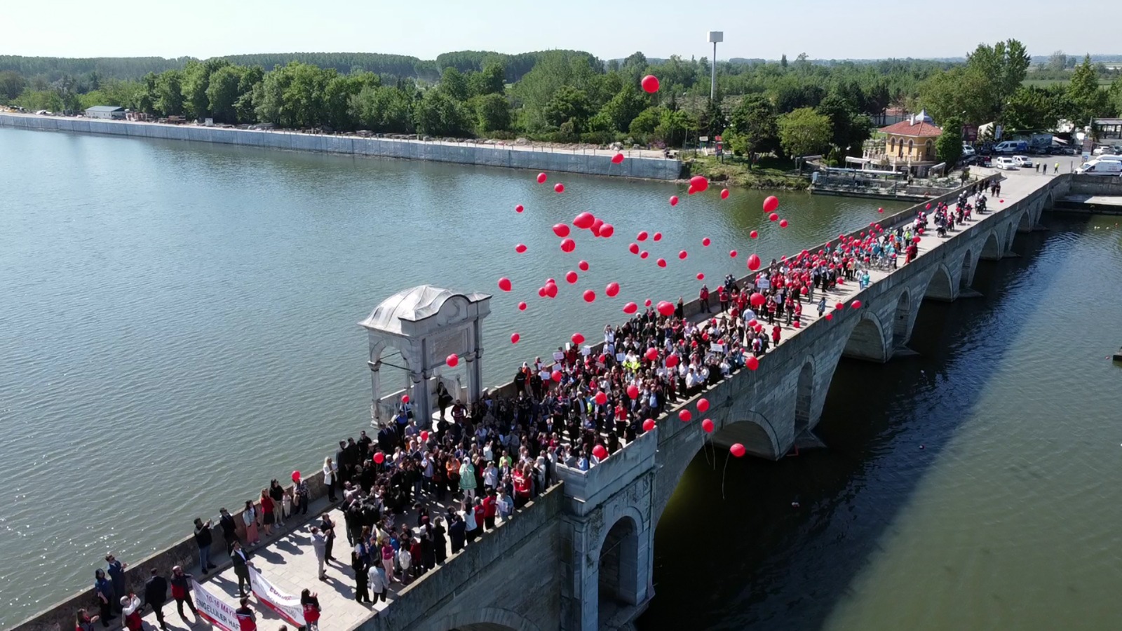 Edirne Valiliği tarafından 15 Mayıs Aile Günü ve Engelliler Haftası kapsamında düzenlenen yürüyüşte bir araya gelen engelliler ve aileleri, beraberlerinde getirdikleri dilek balonlarını tarihi Meriç Köprüsü üzerinden gökyüzüne bıraktı.