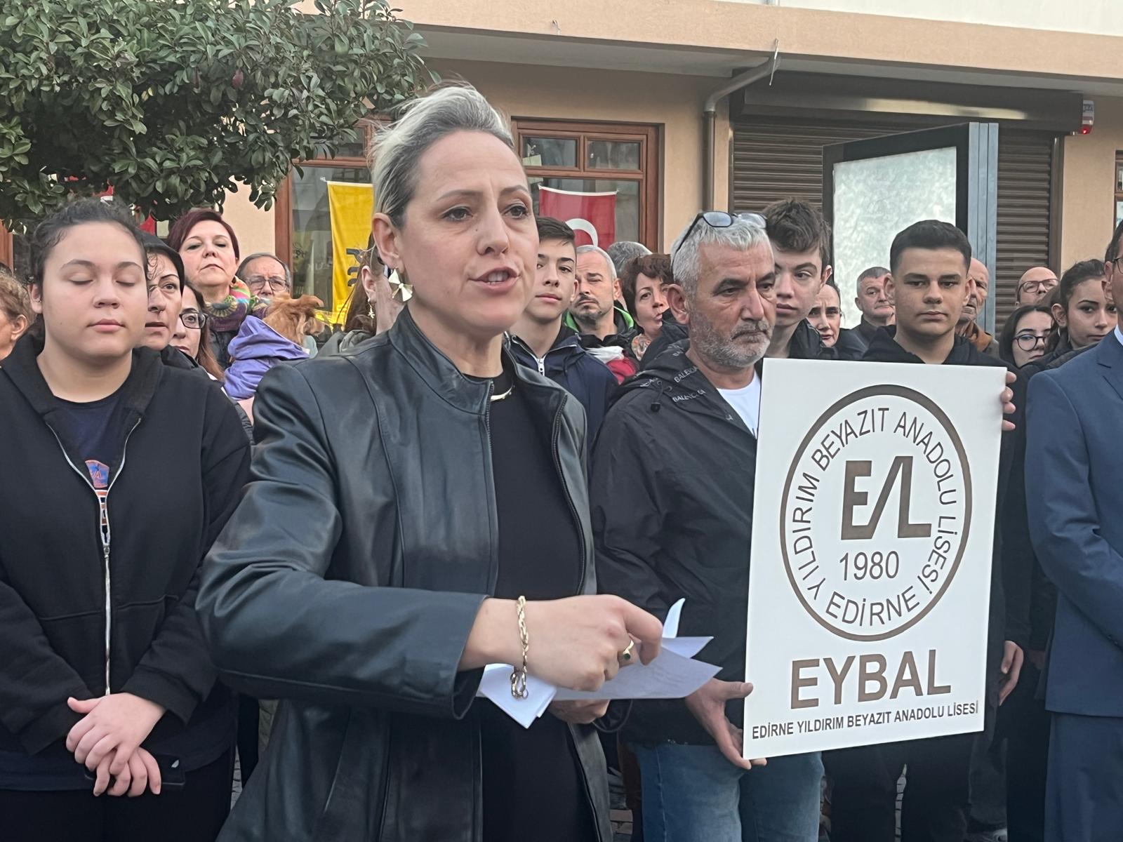 Edirne’de, depreme dayanıksız olduğu gerekçesiyle eğitim binasında yıkım kararı verilerek, 1’nci Murat Anadolu Lisesi’ne taşınan Edirne Yıldırım Beyazıt Anadolu Lisesi’nde (EYBAL) veliler, 20 Kasım Dünya Çocuk Hakları Günü’nde bir araya gelerek basın açıklaması yaptı.