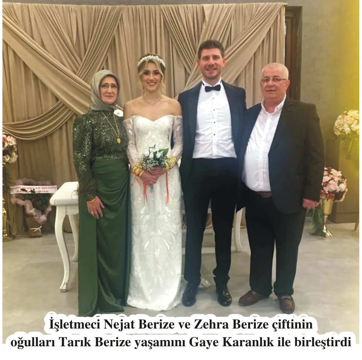 Edirneli işletmeci Nejat Berize ve Zehra Berize’nin oğulları İşletmeci Tarık Berize yaşamını Yalovalı Karanlık Ailesinin kızları Diyetisyen Gaye (Karanlık) Berize ile birleştirdi.