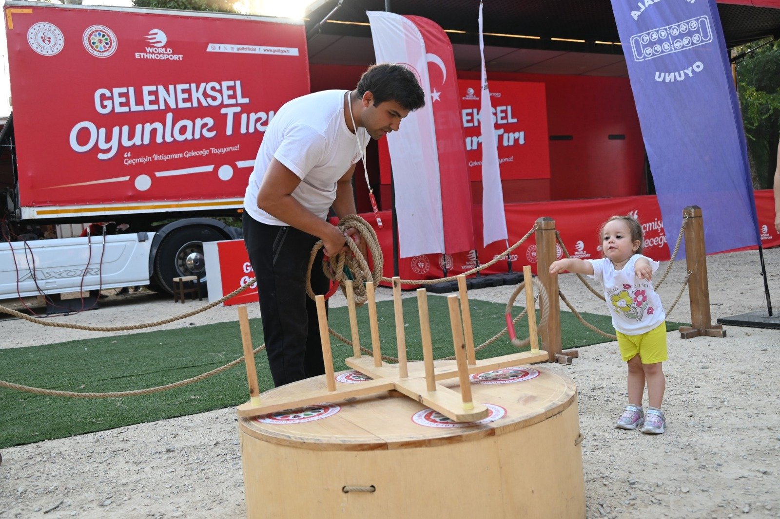 Bakanlığın, Dünya Etnospor Konfederasyonu ortaklığında hayata geçirdiği proje kapsamında, Türkiye’nin farklı illerini dolaşan TIR, dün Edirne’deki Millet Bahçesi’ne geldi. Millet Bahçesi’nde kurulan etkinlik alanında, Türk oyunlarını katılımcılarla buluştu. Etkinliğe katılan çocuklar, aileleriyle birlikte mangala, okçuluk, halat çekme, onikibaş, çemberbaz ve çelik-çomak gibi oyunları deneyimledi.
