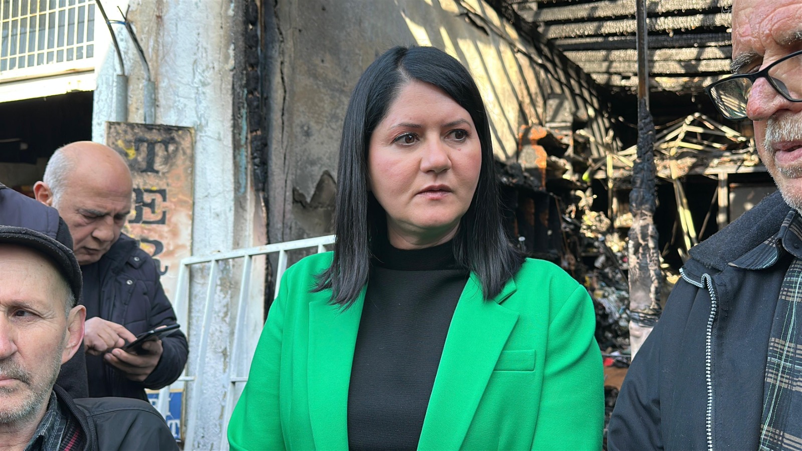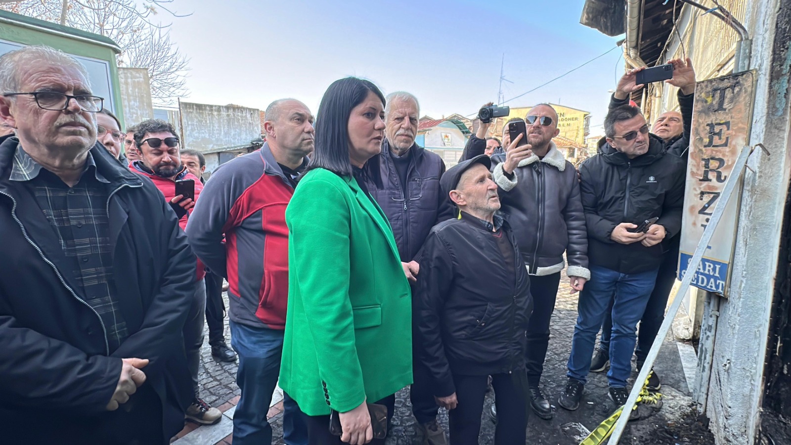 Edirne Belediye Başkanı Filiz Gencan Akın, Pazartesi günü 5 iş yerinin hasar gördüğü yangının meydana geldiği bölgede inceleme yaptı.