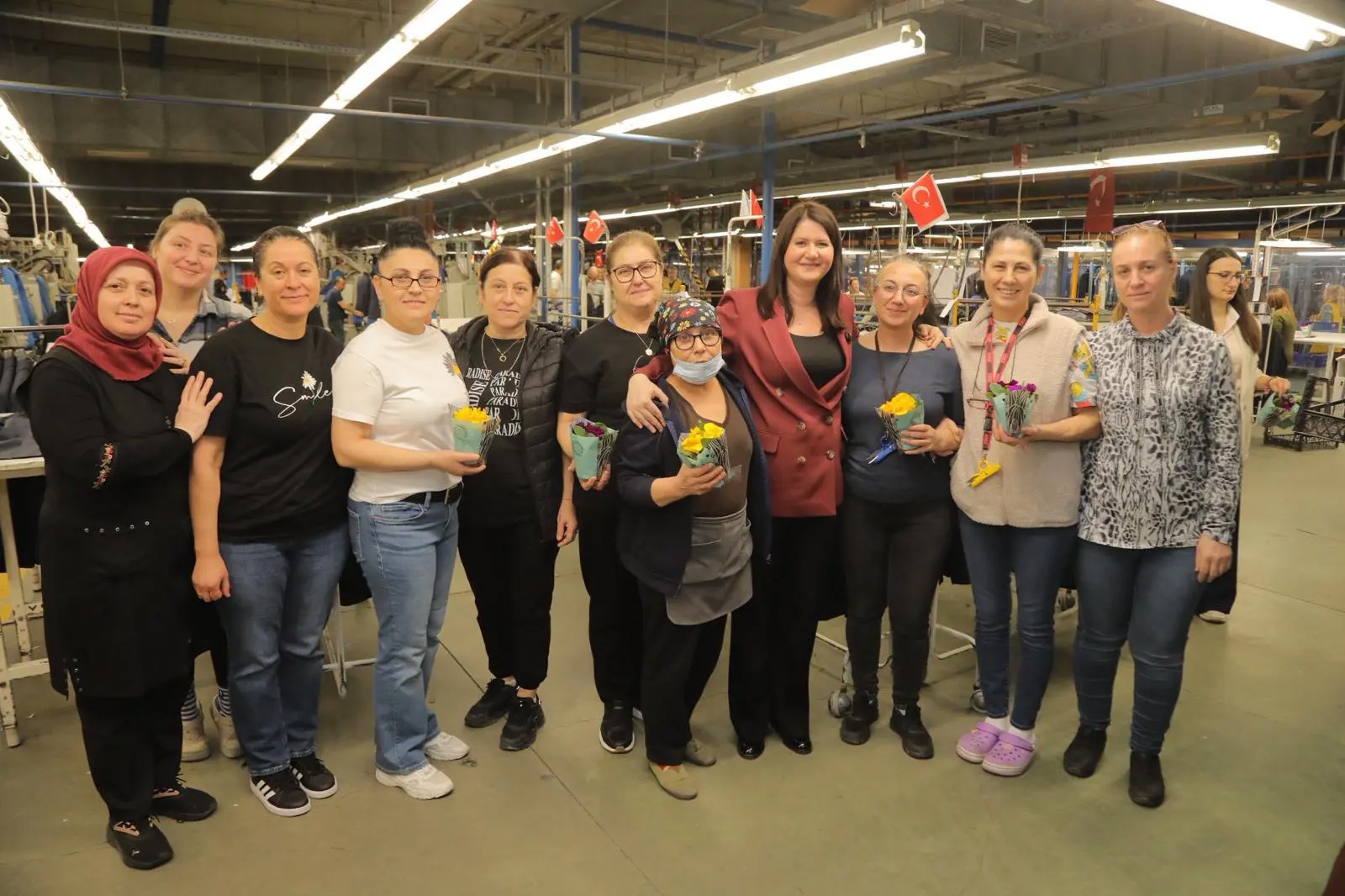 Belediye heyeti, emekçi kadınlara çiçek dağıtımı gerçekleştirerek işlerinde kolaylıklar diledi. Fabrika çalışanları, bu anlamlı günde kendilerini unutmayan Başkan Gencan’a ve belediye yönetimine teşekkürlerini sundu.