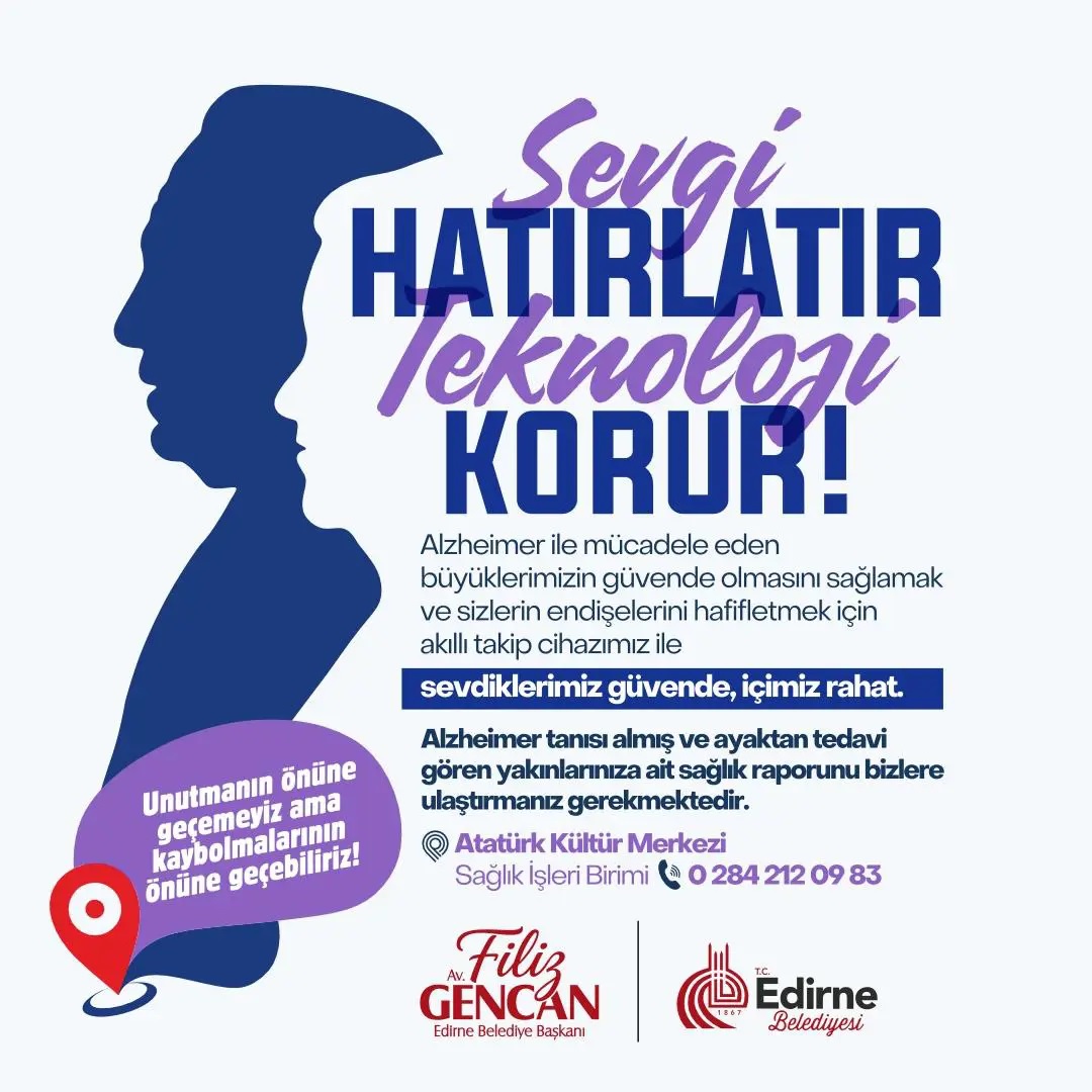 Edirne Belediyesi Sağlık İşleri Birimi tarafından hazırlanan ve yürütülecek proje, Alzheimer hastalığının hem hastalar hem de yakınları için yarattığı kaygı ve zorlukları azaltmayı hedefliyor. Hizmet kapsamında, ayaktan tedavi gören ve Alzheimer sağlık raporu bulunan vatandaşlara ücretsiz akıllı bileklik desteği sağlanacak.