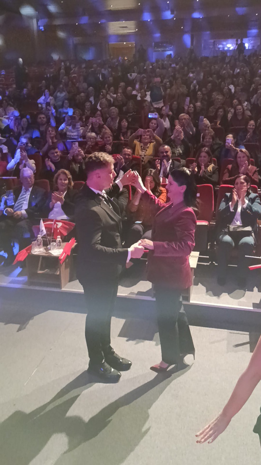 Edirne Belediye Başkanı Filiz Gencan, konser sırasında sahneye çıkarak “Yiğidim Aslanım” eserine eşlik etti ederken, dansçıların teklifini de kırmayarak kısa süreli dans etti.