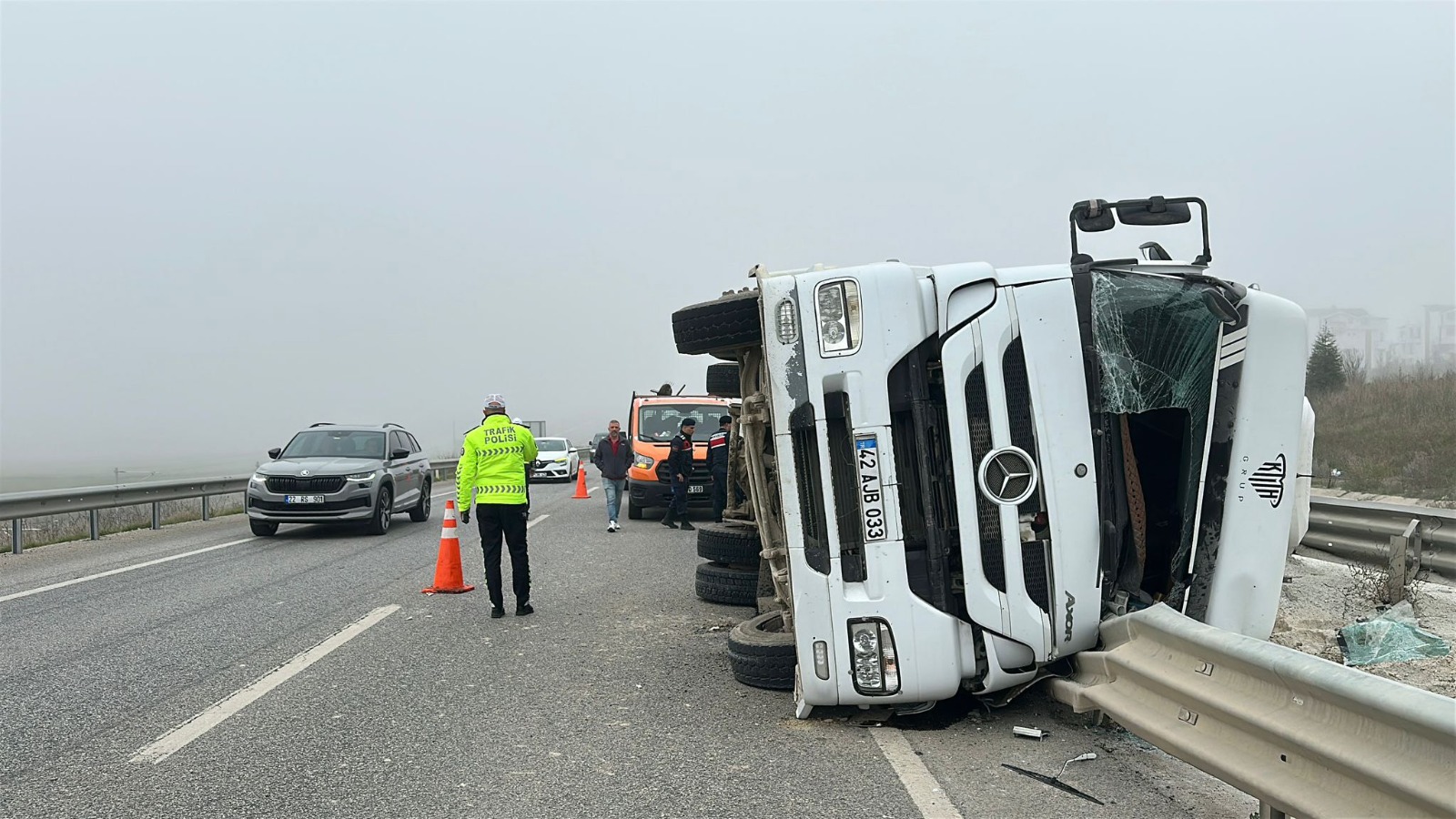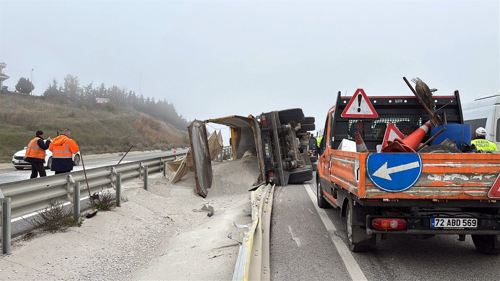 Kaza, Edirne-Havsa ilçesi arasındaki D-100 kara yolunda meydana geldi. M.D.’nin direksiyon hakimiyetini kaybettiği 42 AJB 033 plakalı kum yüklü hafriyat kamyonu, refüj bariyerine çarparak devrildi.