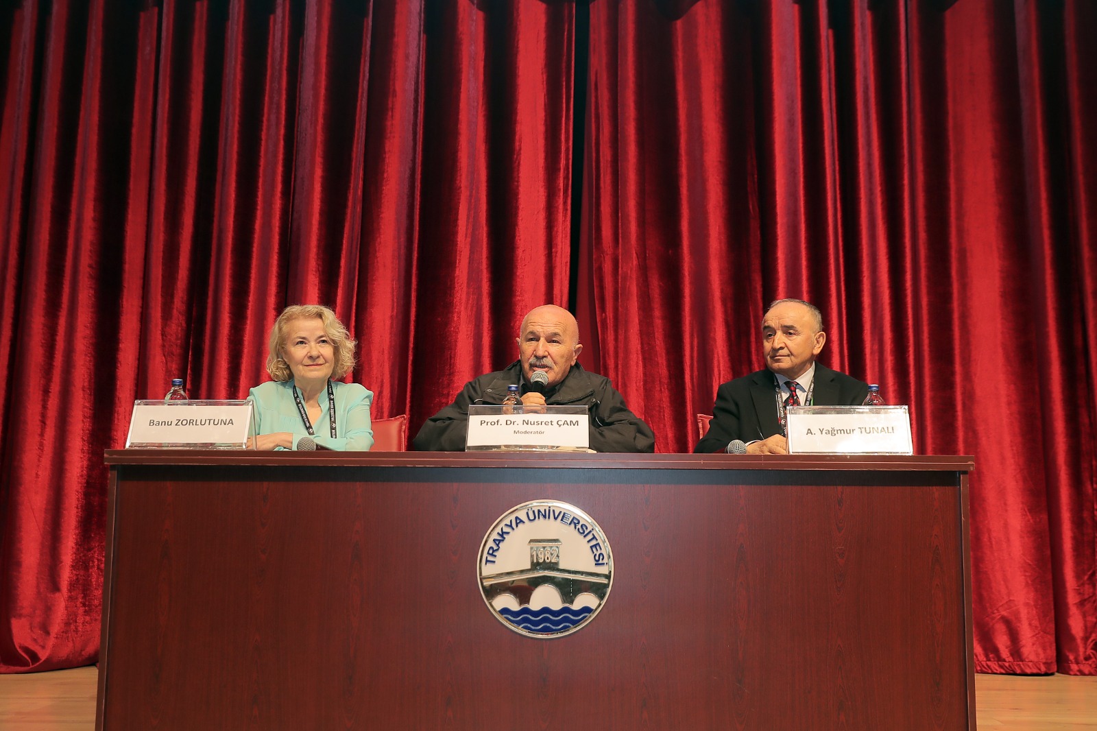 Trakya Üniversitesi Rektörü Prof. Dr. Mustafa Hatipler ise “Bizde veda yok, vefa var” felsefesini hayata geçirmenin mutluluğunu yaşadıklarını belirtti. Hatipler, Halide Nusret Zorlutuna’nın fikirleriyle, eserleriyle ve eğitime adadığı ömrüyle toplumun ve Edirne’nin hafızasında derin izler bıraktığını söyledi. Zorlutuna’nın yaşam serüveninin, Osmanlı’nın son dönemlerinden Cumhuriyet’in ilk yıllarına uzanan Türk edebiyatının değişim ve dönüşüm hikayesini yansıttığını vurguladı ve sempozyumun yalnızca bir edebiyat etkinliği değil, aynı zamanda toplumsal hafızaya ve kültürel kimliğe katkı sunan bir vefa göstergesi olduğunu ifade etti.