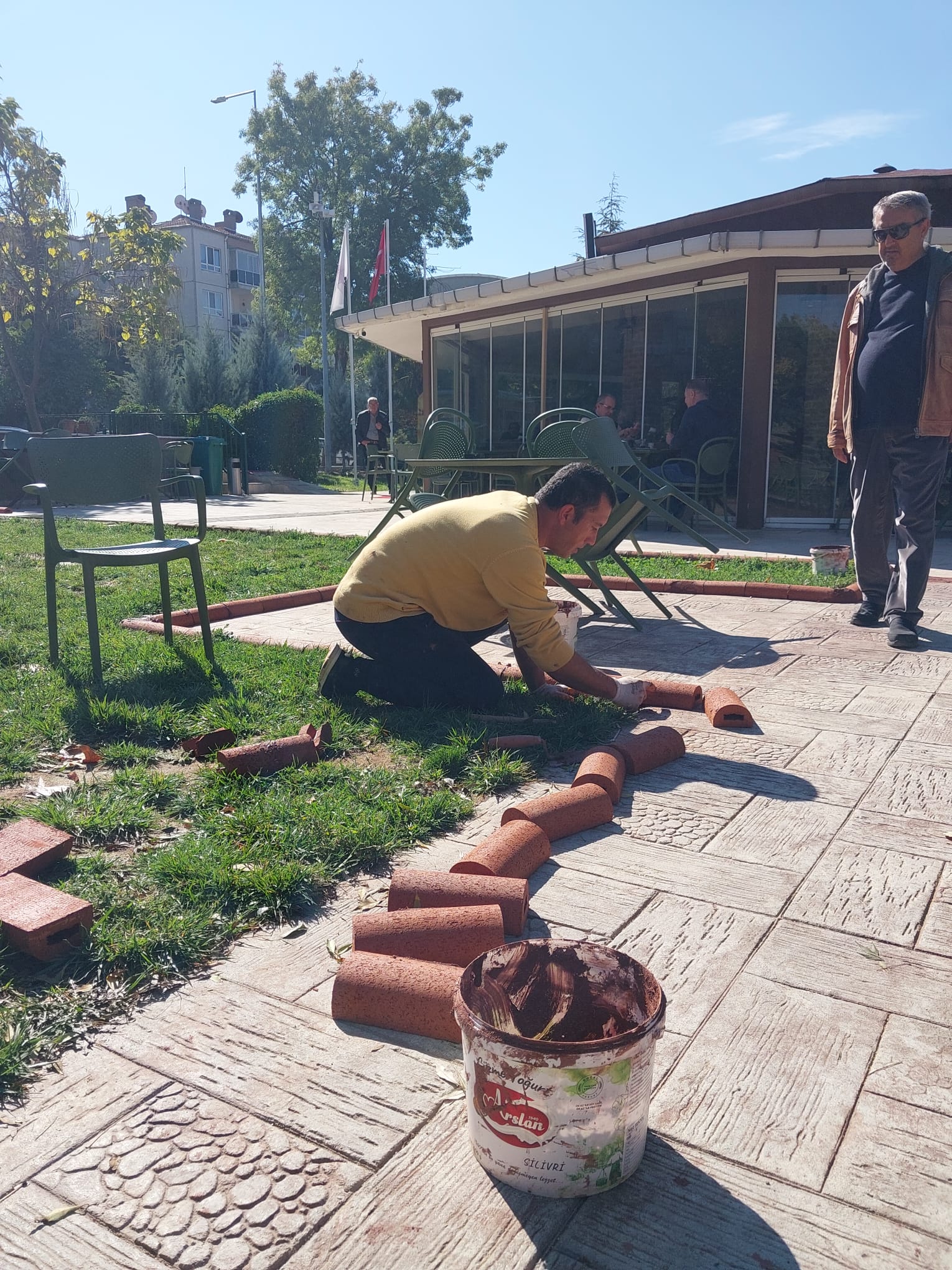 Sonbaharın güzel bir günü yine bahçedeydi. Bu sefer önünde tuğlalar, çimento dolu kovası, elinde malası oturma yerleriyle yeşil alanların arasına tuğlaları diziyordu itinayla. “Kolay gelsin” ile selamlayıp gözlemlemeye devam ettim.