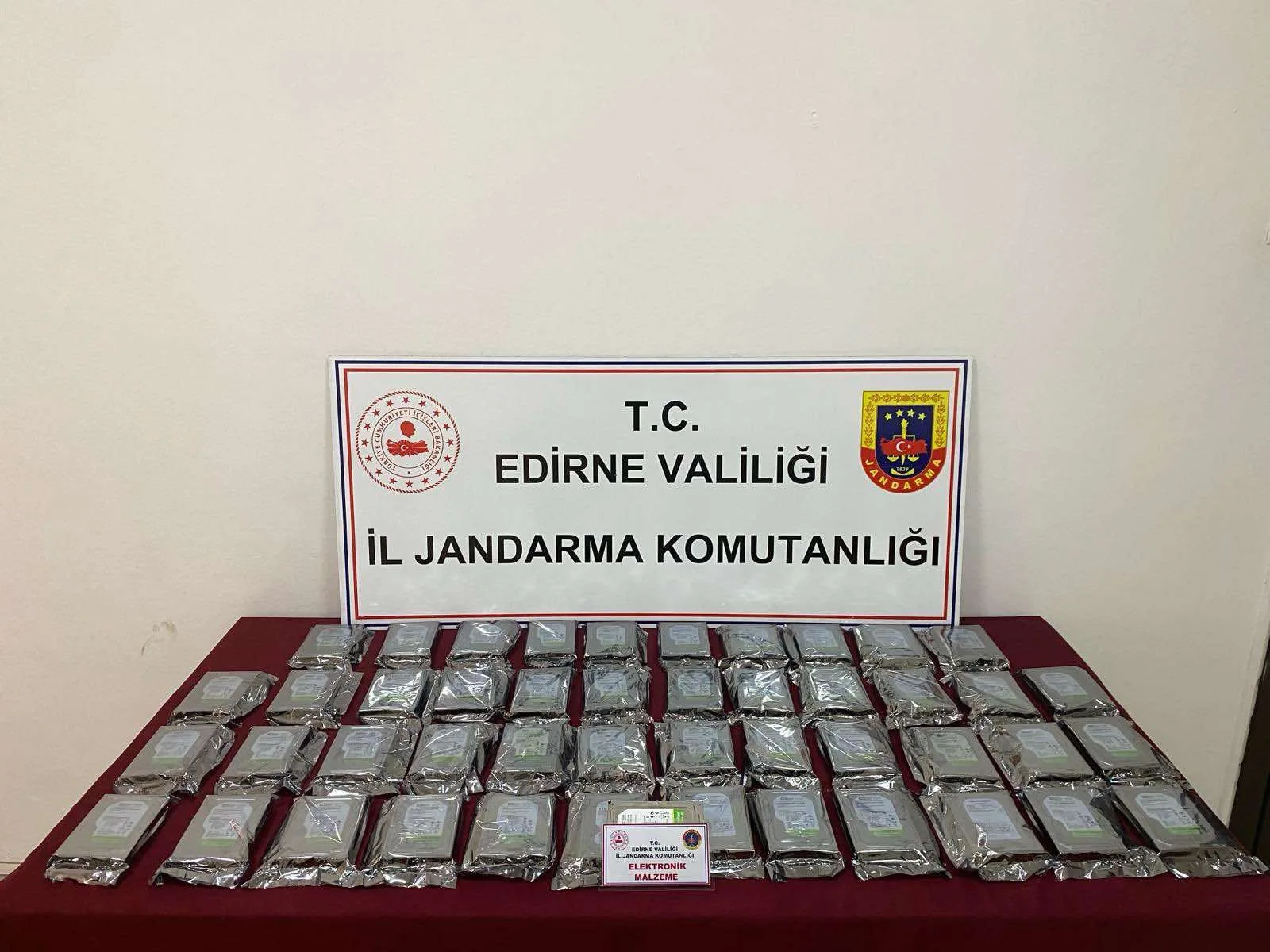 Edine merkezde jandarma ekiplerince yabancı plakalı bir araçta yapılan aramada çok sayıda harddisk ele geçirildi.