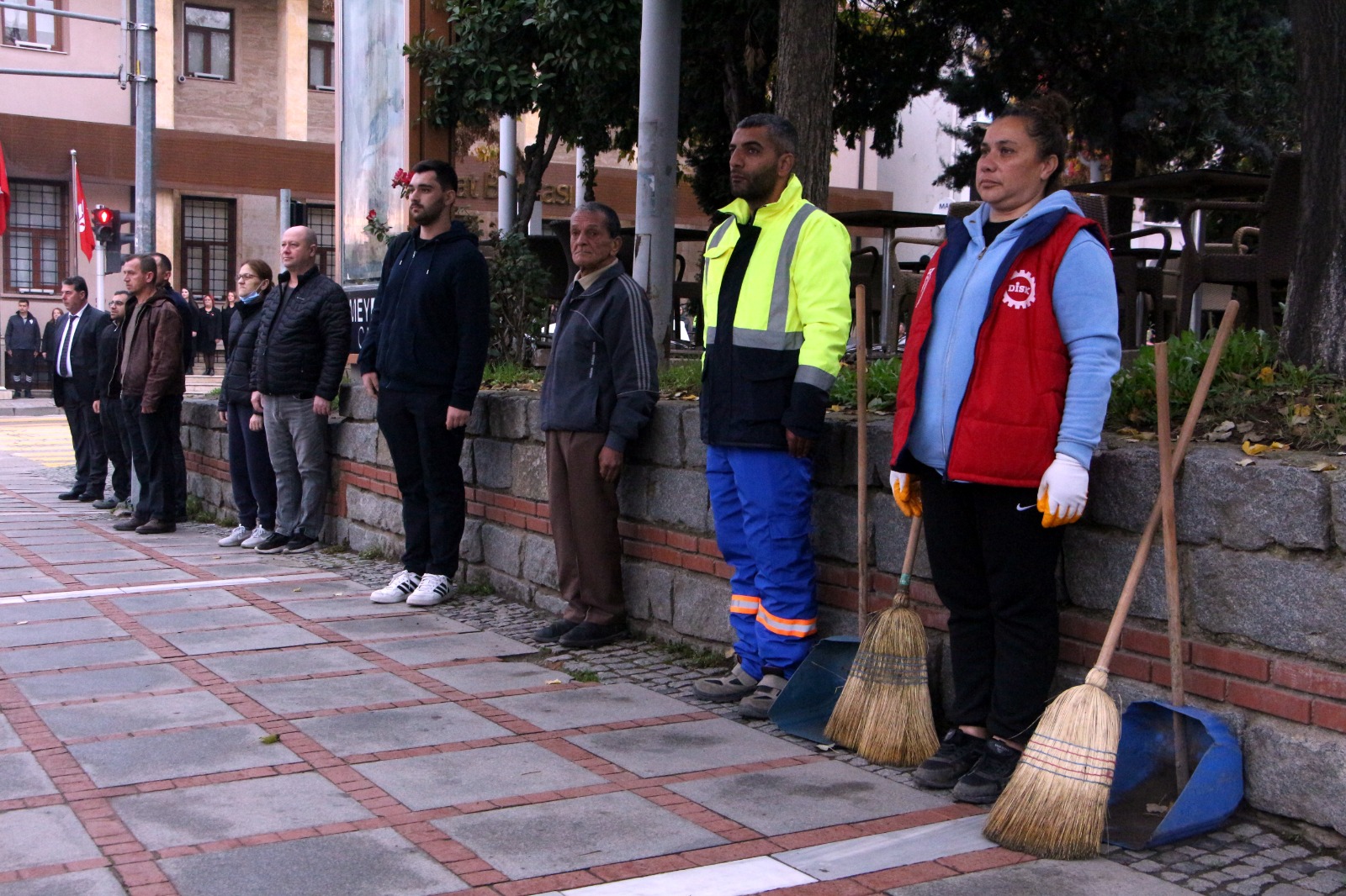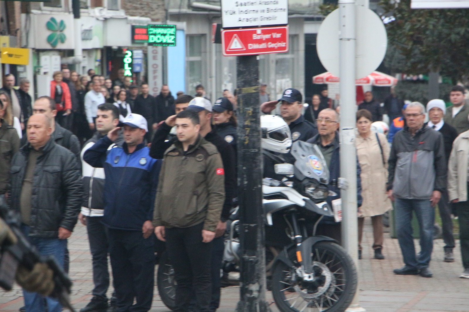 Türkiye Cumhuriyeti'nin kurucusu Gazi Mustafa Kemal Atatürk, ebediyete intikalinin 87'nci yıl dönümünde Edirne’de törenle anıldı… Trafikte kontak kapatıp araçlarından inenler, sokakta temizlik yapan işçiler, banka çalışanları ve 7’den 70’e çok sayıda vatandaş, saat 09.05'te çalan siren sesiyle saygı duruşuna geçerken, hayat 2 dakikalığına durdu…
