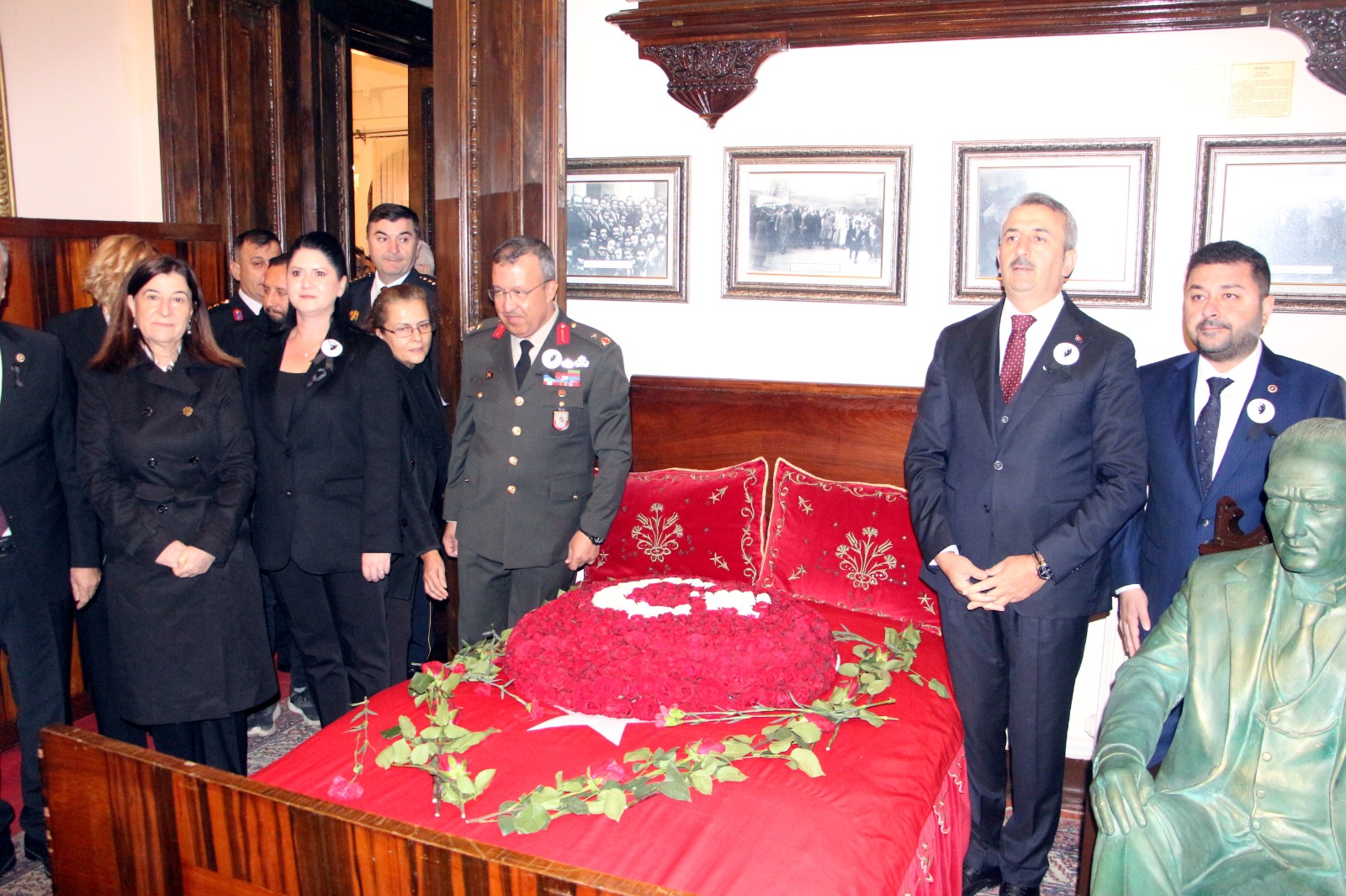 Anıt önündeki törenin ardından Vali Yunus Sezer eşliğindeki protokol, Edirne Belediyesi’ndeki Atatürk odasını ziyaret etti. Protokol Atatürk’ün Edirne ziyaretinde kaldığı yatağa karanfiller bırakırken, Vali Yunus Sezer de anı defterini imzaladı.