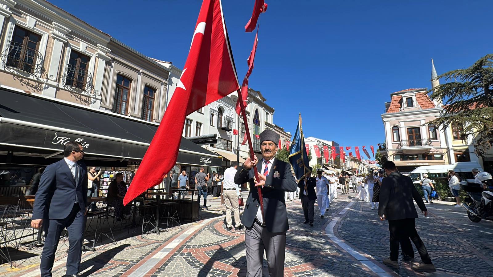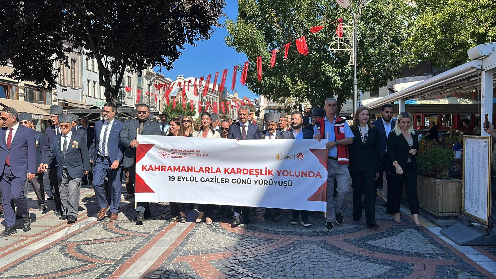 Edirne’de, 19 Eylül Gaziler Günü dolayısıyla tören Atatürk Anıtı’nda tören düzenlenirken, Saraçlar Caddesi’nde kortej yürüyüşü yapıldı.