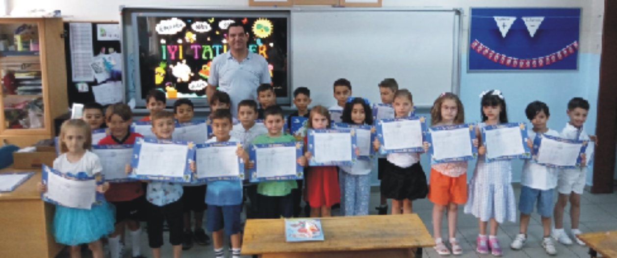 Bu hayatta okumak yazmak her türlü beceriyi kazanmaya hazır hale gelmek en büyük kıvancımız. Bana öğretmen olmanın gurur ve onurunu yaşatan sevgili öğrencilerimin her birini kutluyorum. Böylesine değerli varlıklara sahip olan değerli velilerimize onların üzerindeki emekleri ve sonsuz ilgilerinden dolayı teşekkür ediyorum. Öğretmen Özgür Alpay öğrencilerine meyve suyu ikram edip karnelerini verdi ve her biri ile tek tek kucaklaştı. Tatilde bol bol dinlemelerini eğlenmelerini isteyen Alpay öğrencilerine kitap okumalarını da tavsiye etti. Topluca anı pozu veren minikler ikinci sınıfta görüş-mek üzere birbirleri ile ve öğretmenleri ile vedalaşıp velileriyle okuldan ayrıldı.