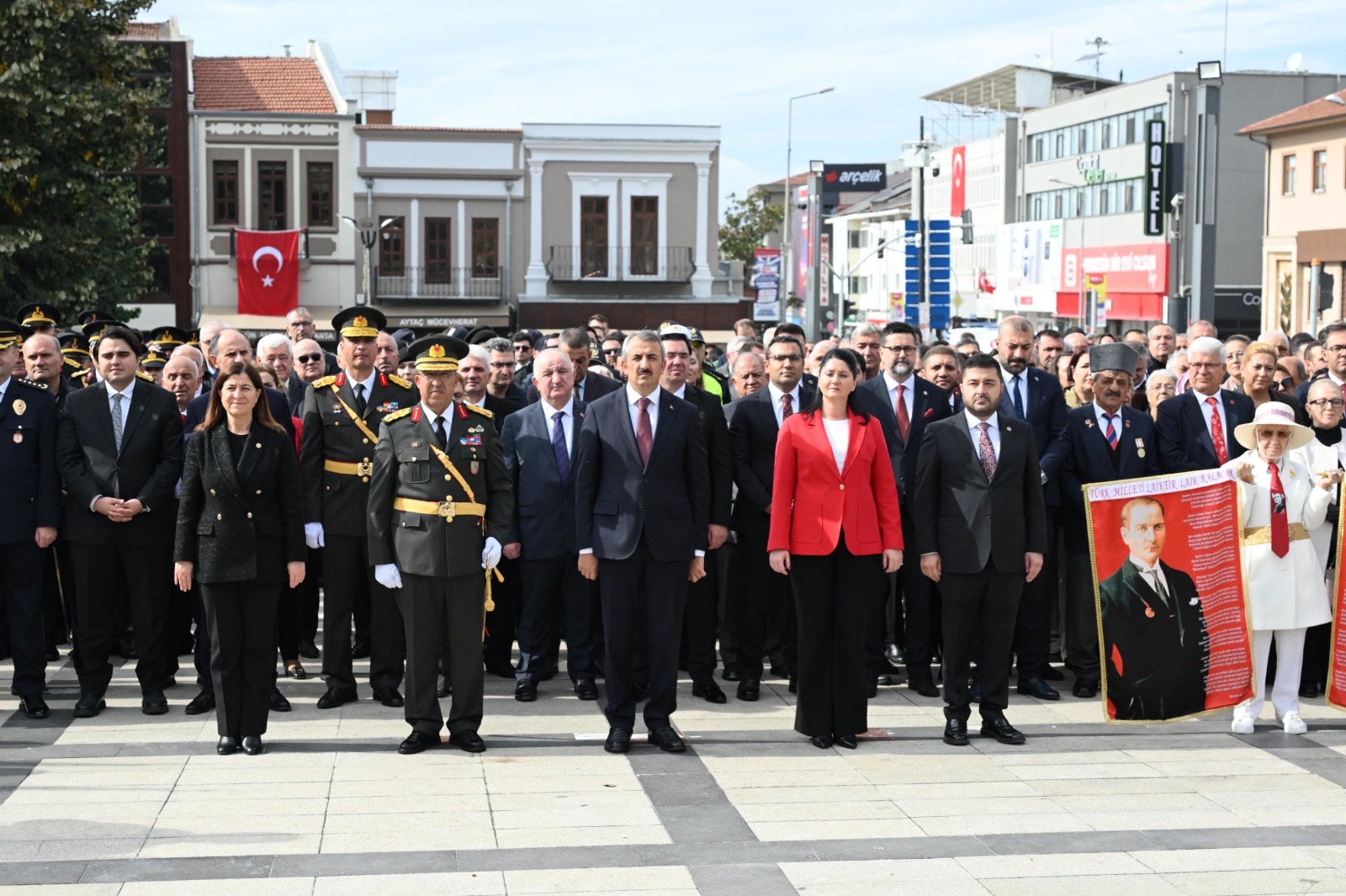 Atatürk Anıtı’nda gerçekleştirilen törene; Edirne Valisi Yunus Sezer, AK Parti Edirne Milletvekili Fatma Aksal, CHP Edirne Milletvekili Ahmet Baran Yazgan, Garnizon Komutanı Tuğgeneral Yüksel Kolcu, Edirne Belediye Başkanı Filiz Gencan, kurum müdürleri, siyasi parti ve sivil toplum kuruluşlarının temsilcileriyle öğrenciler katıldı.
