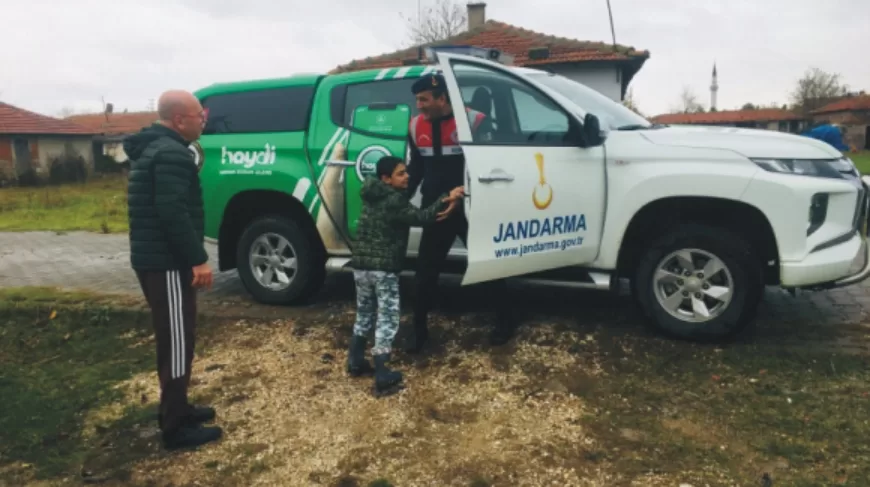 Uzunköprü İlçesinde ikamet eden bir özel gereksinimli bir çocuğun evine ziyaret gerçekleştiren jandarma ekipleri sahiplendiği sokak köpeği için kendisine mama hediye etti.