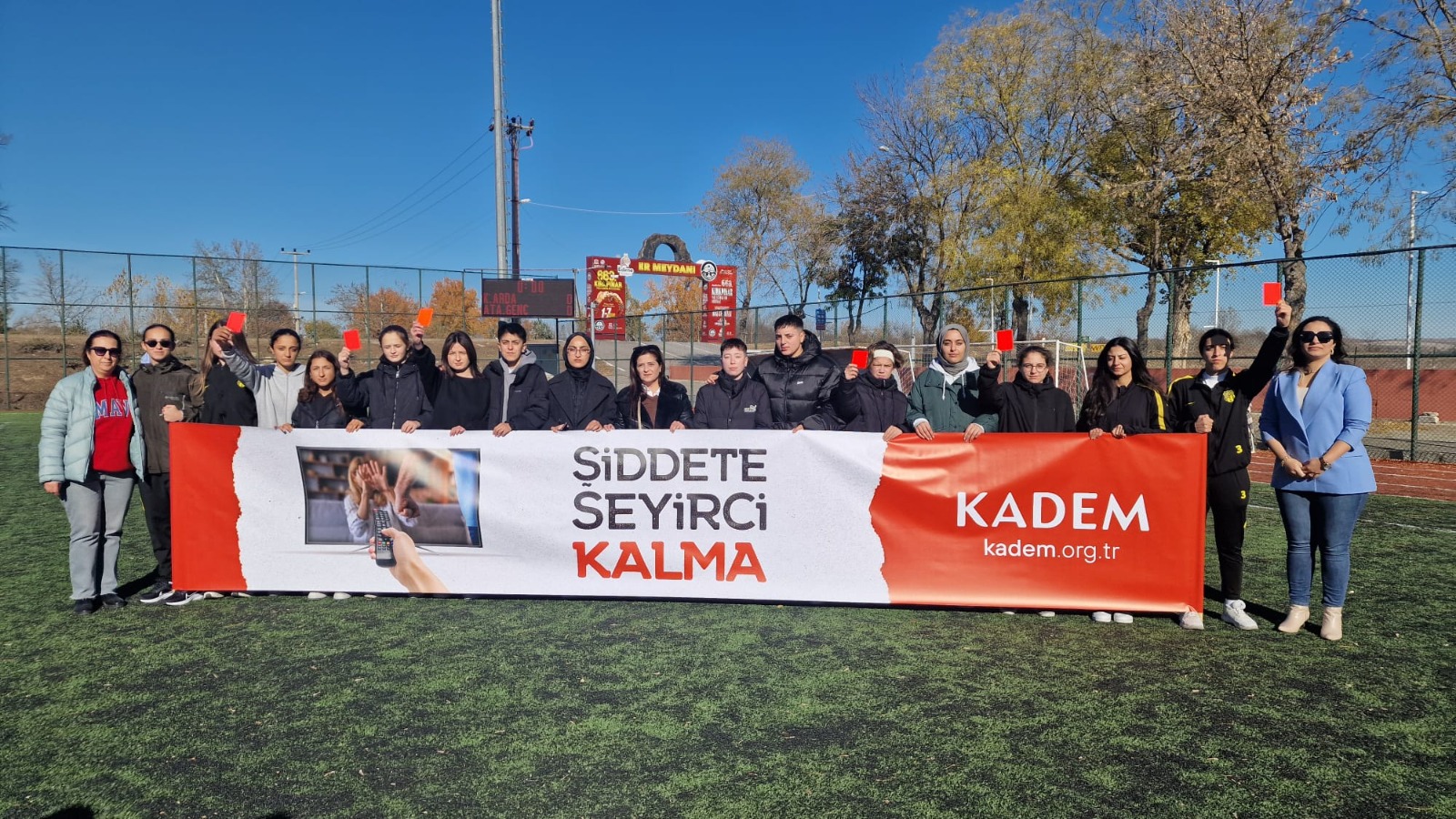 Maç saatinde ise kulübün hem erkek hem kadın takımı oyuncuları sahaya inerek kadına şiddete tepki amaçlı ‘Şiddete Seyirci Kalma’ yazılı pankartla çıktı. 25 Kasım Kadına Yönelik Şiddetle Mücadele Günü kapsamında verilen mesaj maçı izlemeye gelenlerden de destek aldı. Kadın futbolcular ayrıca şiddete karşı ‘kırmızı kart’ gösterdi. Maç başlamadan önce iki takım futbolcuları yine aynı pankartla çıkarak ‘şiddete hayır’ mesajı verdi.