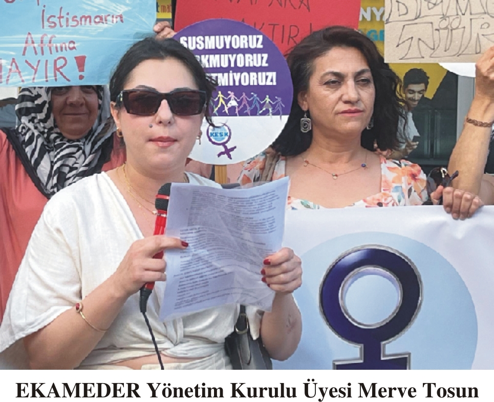 Tosun, iktidarı 9. yargı paketini geri çekmeye davet ederek, “İktidar partisi, yine bir torba yasa taslağını, yine içine konulan çerezlik konuların yanına eklemiş, kadınların temel insan haklarını tehdit eden başlıklarla 9. yargı paketi olarak dayatıyor. Bu ‘paket’ ile hangi haklarımızın gasp edileceğini Meclis’e getirilinceye kadar tam olarak öğrenemiyoruz bile. Sızdırılan ilk taslak 38 madde iken; Adalet Bakanı taslağın 62 madde olduğunu söylüyor, 23 kanun ile 2 KHK’da değişiklik yapacağız diyor. Kamuoyuna sızdırılan 38 madde hakkında bir fikrimiz var ama kalan 24 maddenin hangi konularda olduğuna dair hiçbir açıklama yapılmadı, yapılmıyor. Medeni Yasa’dan 6284 sayılı şiddet yasasına, ceza yasasından infaz yasasına kadar birçok temel yasada değişikliği 38 maddelik haliyle aynı torbaya tıkıştıran yasa teklifi ile iktidar, bir yandan tekrar tekrar suç işleyenlere af getirmeye çalışırken, diğer yandan ‘etki ajanlığı’ adı altında yeni bir suç icat etmeye de çalışıyor” dedi.
