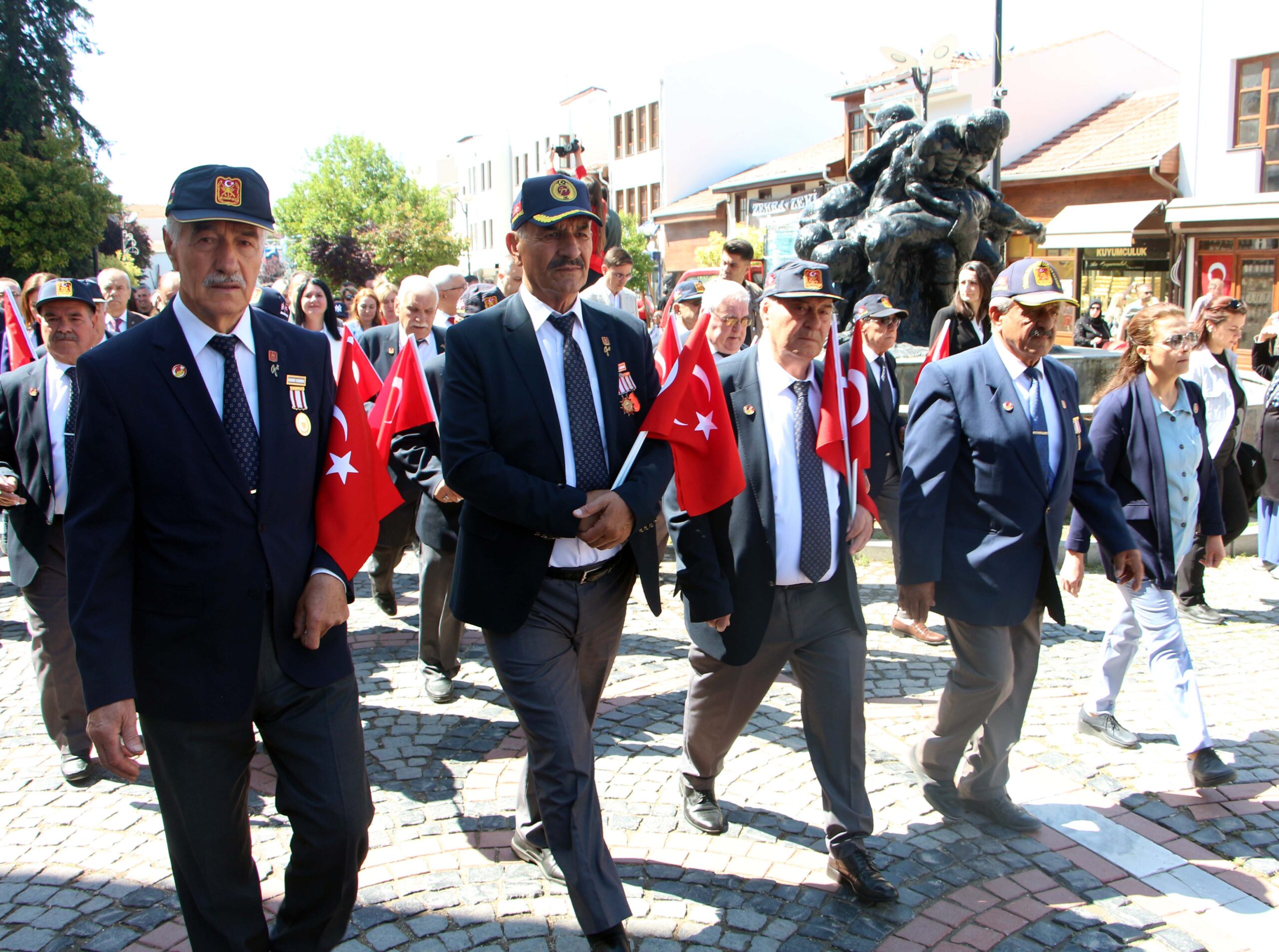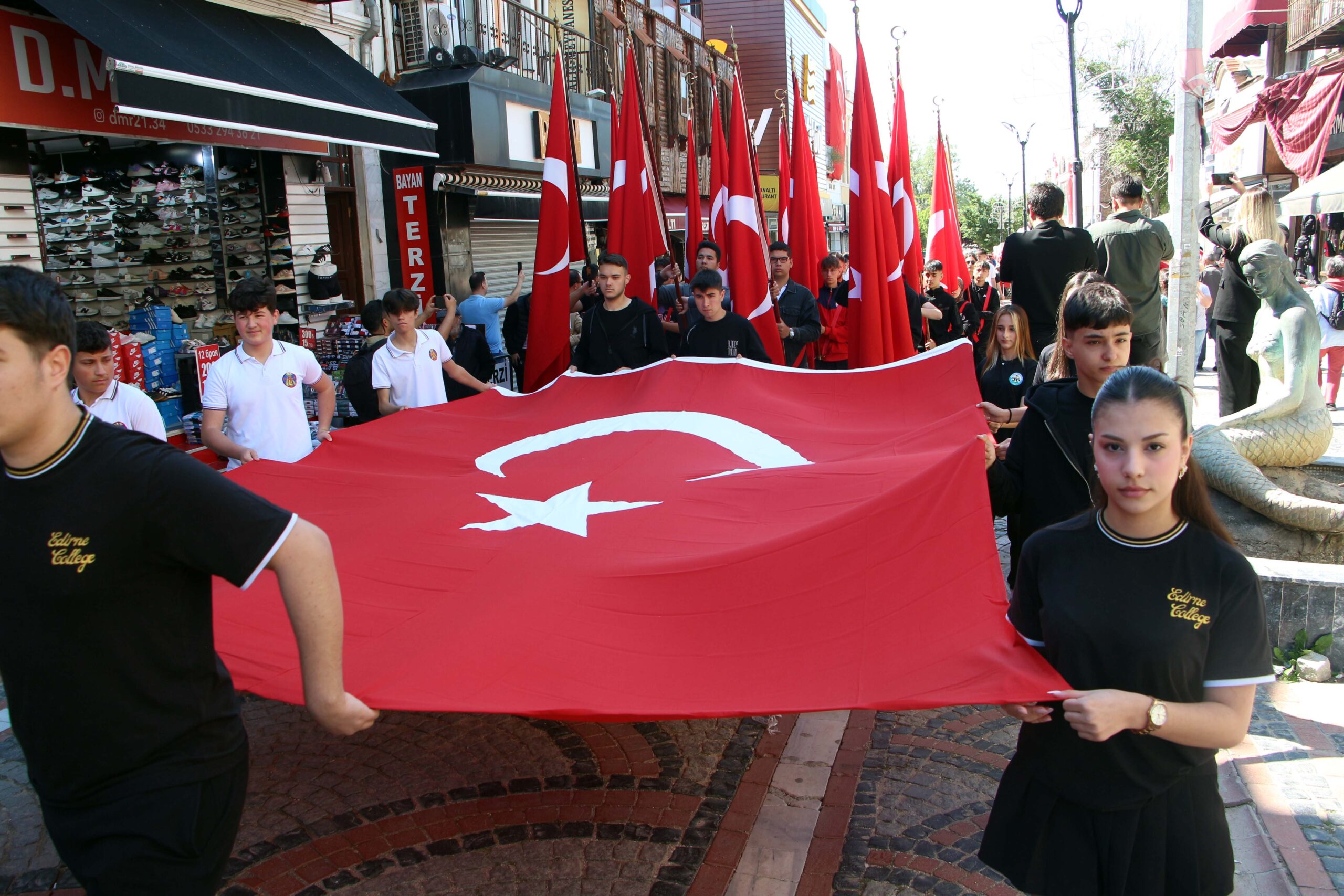 Edirne’deki törenler, 25 Kasım Stadı önünde buluşan kortejin Atatürk Anıtı’na yürüyüşüyle başladı. Kortej yürüyüşüne, Edirne Belediye Başkanı Filiz Gencan Akın, siyasi partilerin temsilcileri, Gençlik ve Spor İl Müdürü Selim Ak, gaziler, çok sayıda kurum ve kuruluş temsilcileriyle öğrenciler katıldı.