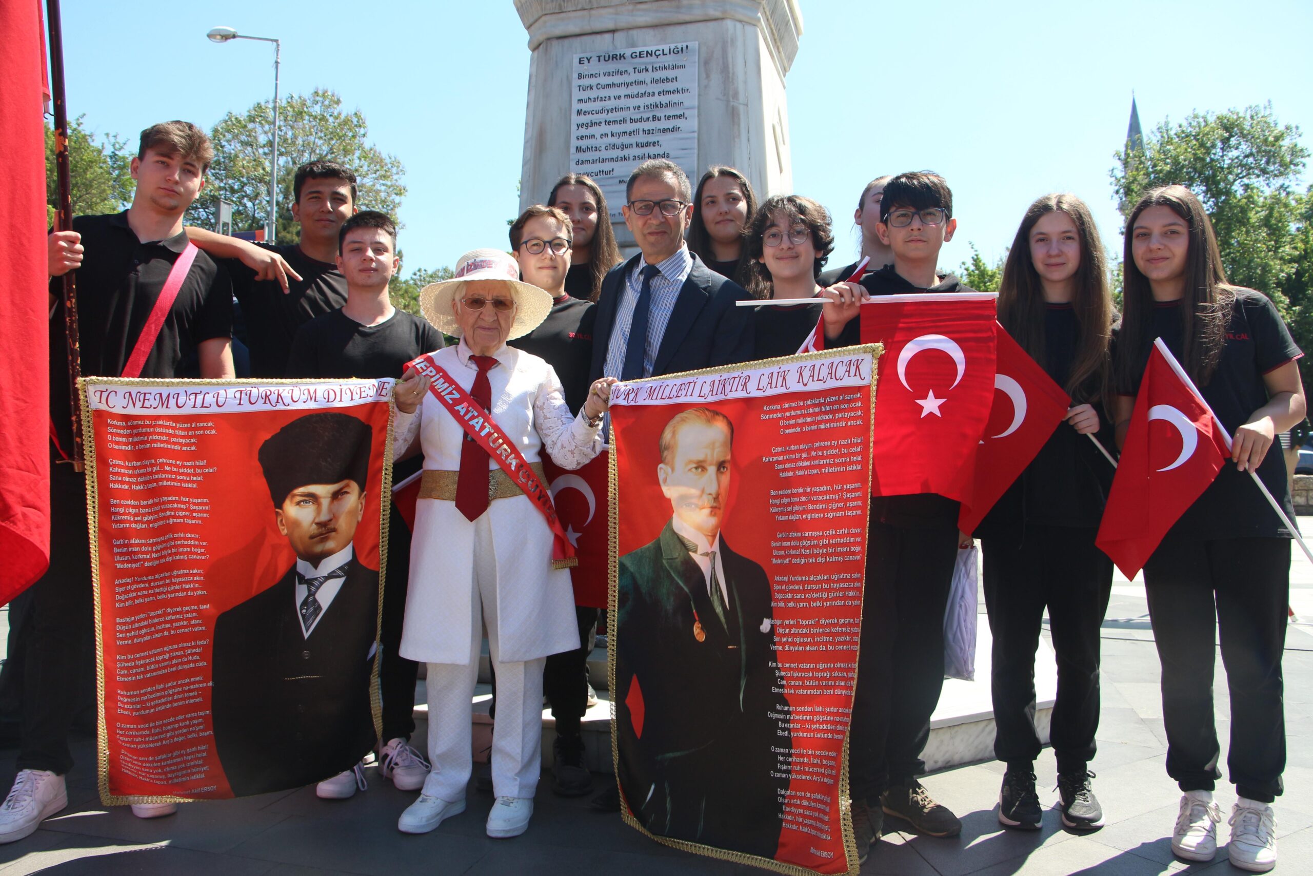 Yürüyüşün ardından Atatürk Anıtı’nda düzenlenen törende çelenk sunulup, saygı duruşunda bulunularak, İstiklal Marşı okundu.